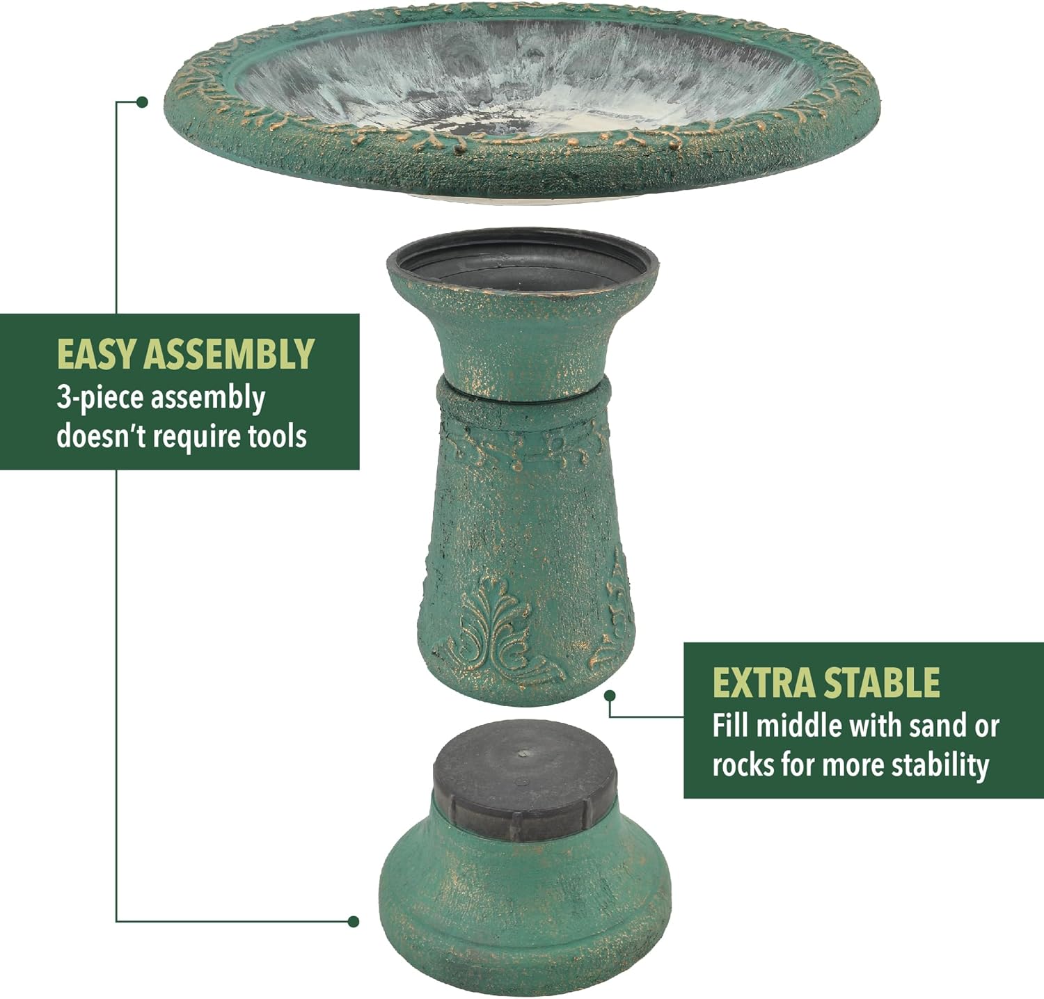 Invite nature into your outdoor sanctuary with the Arcadia Garden Products Fiberclay Bird Bath. Designed to combine the elegance of vintage pottery with modern durability, this 20-inch tall birdbath serves as a stunning focal point for your patio, lawn, or garden area. The beautiful antique green finish offers a classic, weathered look that blends seamlessly with natural landscapes, while the innovative Fiberclay construction ensures the bowl is lightweight and easy to move compared to traditional stone or concrete. This material is not only durable and frost-resistant but also promotes healthy plant root systems if you choose to use it as a planter. Beyond aesthetics, this water bowl plays a vital role in your local ecosystem by attracting a variety of wild birds. Providing a reliable water source supports bird health and encourages natural pest control and pollination for your flowers. The bath features a two-piece design for quick assembly and convenient off-season storage. For added stability in windy conditions, the base can be filled with sand or stones. Transform your backyard into a vibrant wildlife haven today.