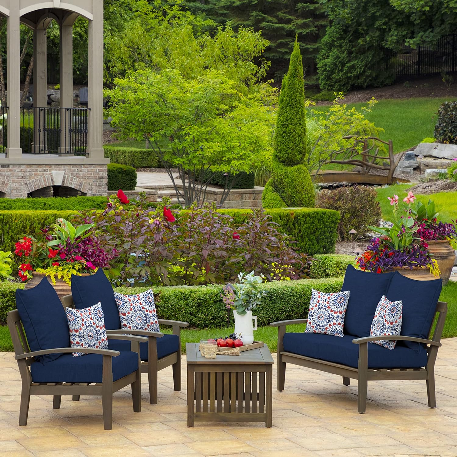 Arden Outdoor Deep Seat Cushion Set – 24×24 Inch Fade & Weather Resistant Patio Furniture Cushions (Sapphire Blue Leala)