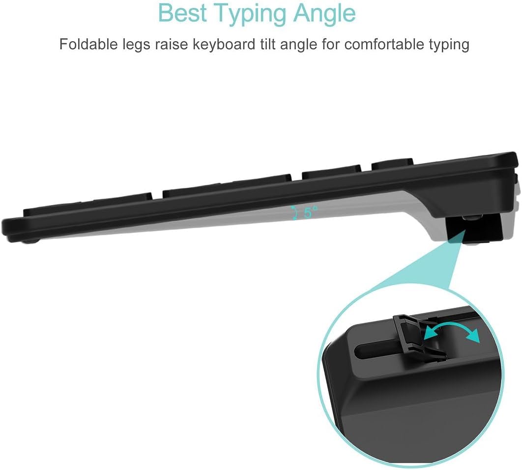 Built for comfort and durability, the Arteck keyboard features a premium design with a solid feel. The low-profile, scissor-switch keys provide a quiet and responsive typing experience, while the full layout includes a dedicated number pad, arrow keys, and function keys for efficient data entry and navigation.