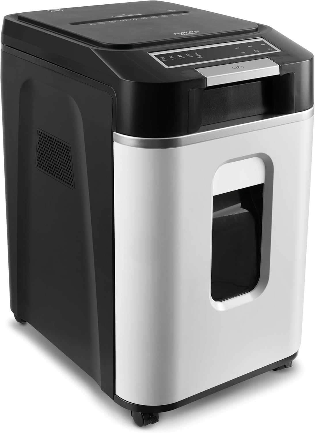 Protect your sensitive business and personal data with the AURORA Commercial Grade 220-Sheet Auto-Feed Micro-Cut Shredder. Designed for high-volume environments, this robust machine features a dedicated auto-feed tray that allows you to load up to 220 sheets of paper at once, automating the shredding process to save you valuable time. For manual shredding tasks, the slot accepts up to 12 sheets in a single pass. Engineered for security level P-5, it destroys documents into tiny micro-cut particles (2mm x 12mm), ensuring that your confidential information is unreadable and reconstruction is impossible. The heavy-duty motor offers a continuous runtime of up to 60 minutes, perfect for tackling large backlog shredding jobs without the need for a cooldown period. Maintenance and waste disposal are effortless thanks to the spacious 8.5-gallon pull-out wire frame basket with a transparent window, allowing you to monitor bin levels. Whether for a busy home office or a corporate workspace, the AURORA AU220MB provides the ultimate blend of capacity, security, and convenience.