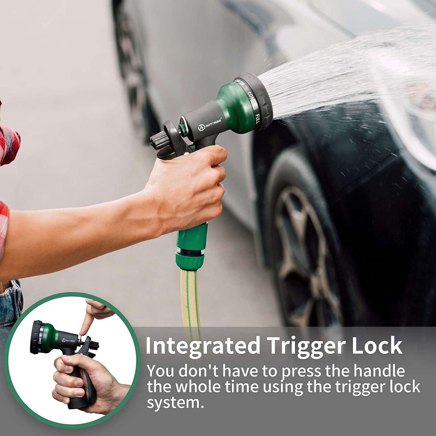 AUTOMAN Garden Hose Nozzle 2 Pack – Heavy Duty Adjustable Water Spray Nozzle with 7 Patterns, Ergonomic Non-Slip Grip & Lockable Flow for Lawn, Car Wash & Pet Cleaning