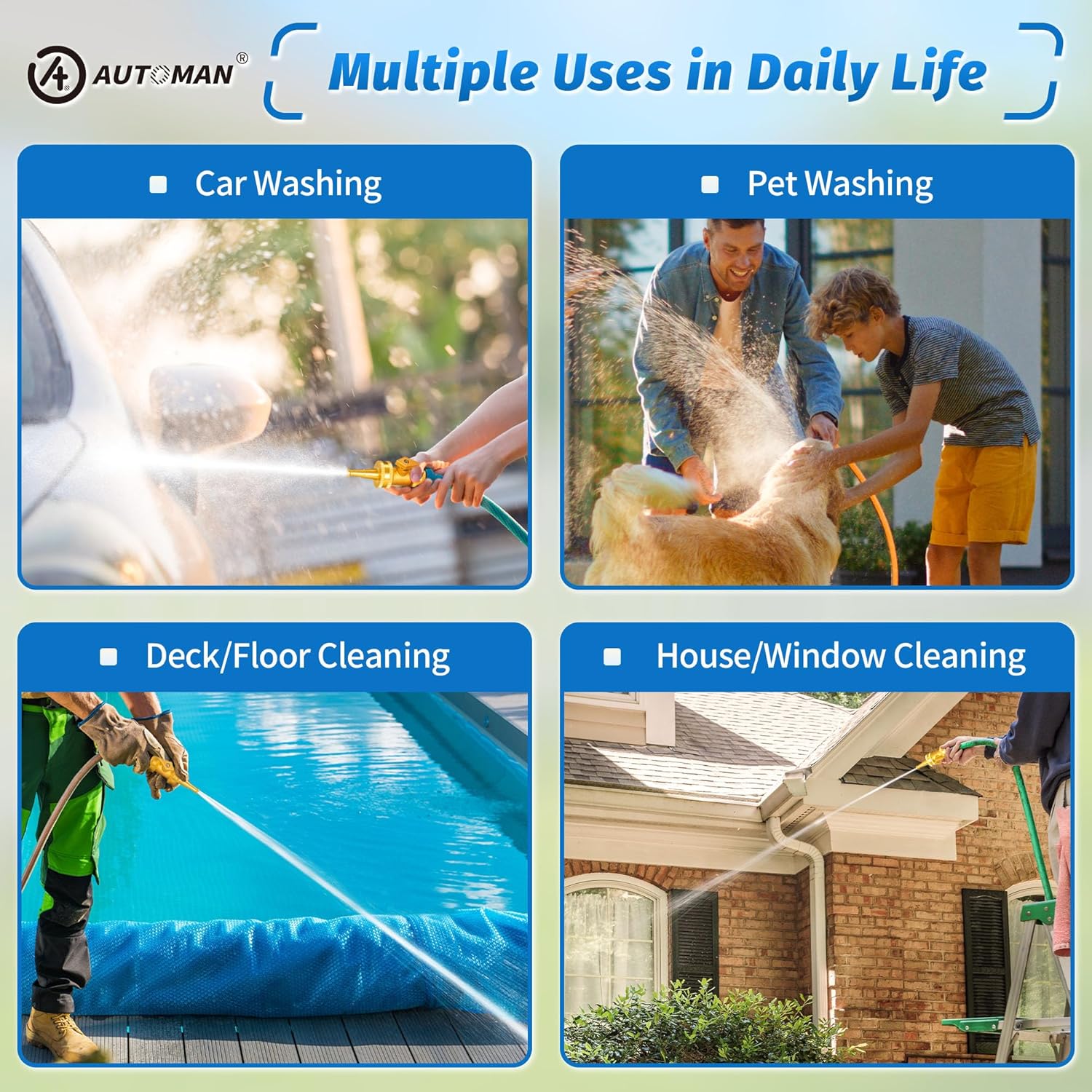 POWERFUL HIGH-PRESSURE JET: Experience the force of a concentrated jet stream perfect for tough cleaning jobs. From stripping mud off tires to sweeping sidewalks and cleaning decks, the powerful water flow cuts through grime effortlessly. It also works wonderfully for garden watering and pet washing.