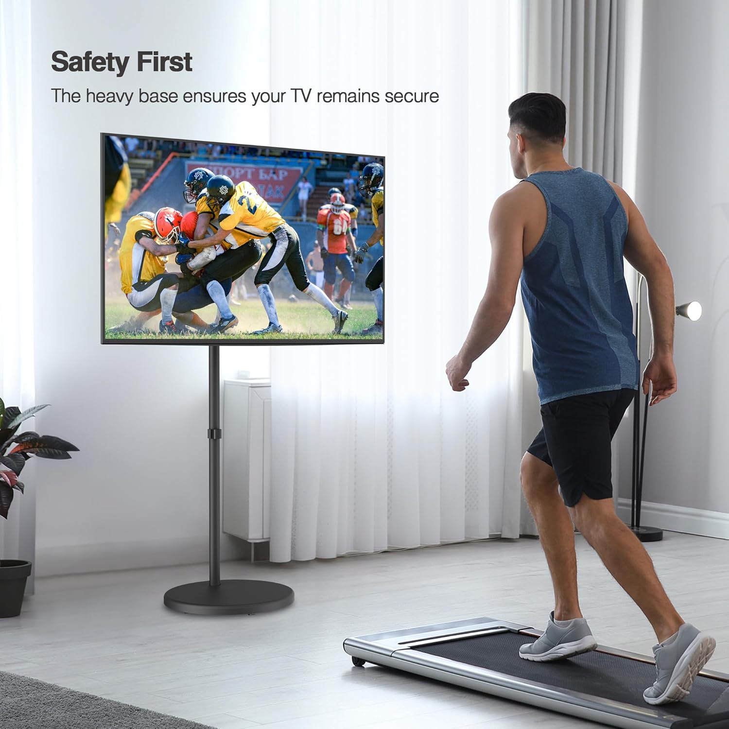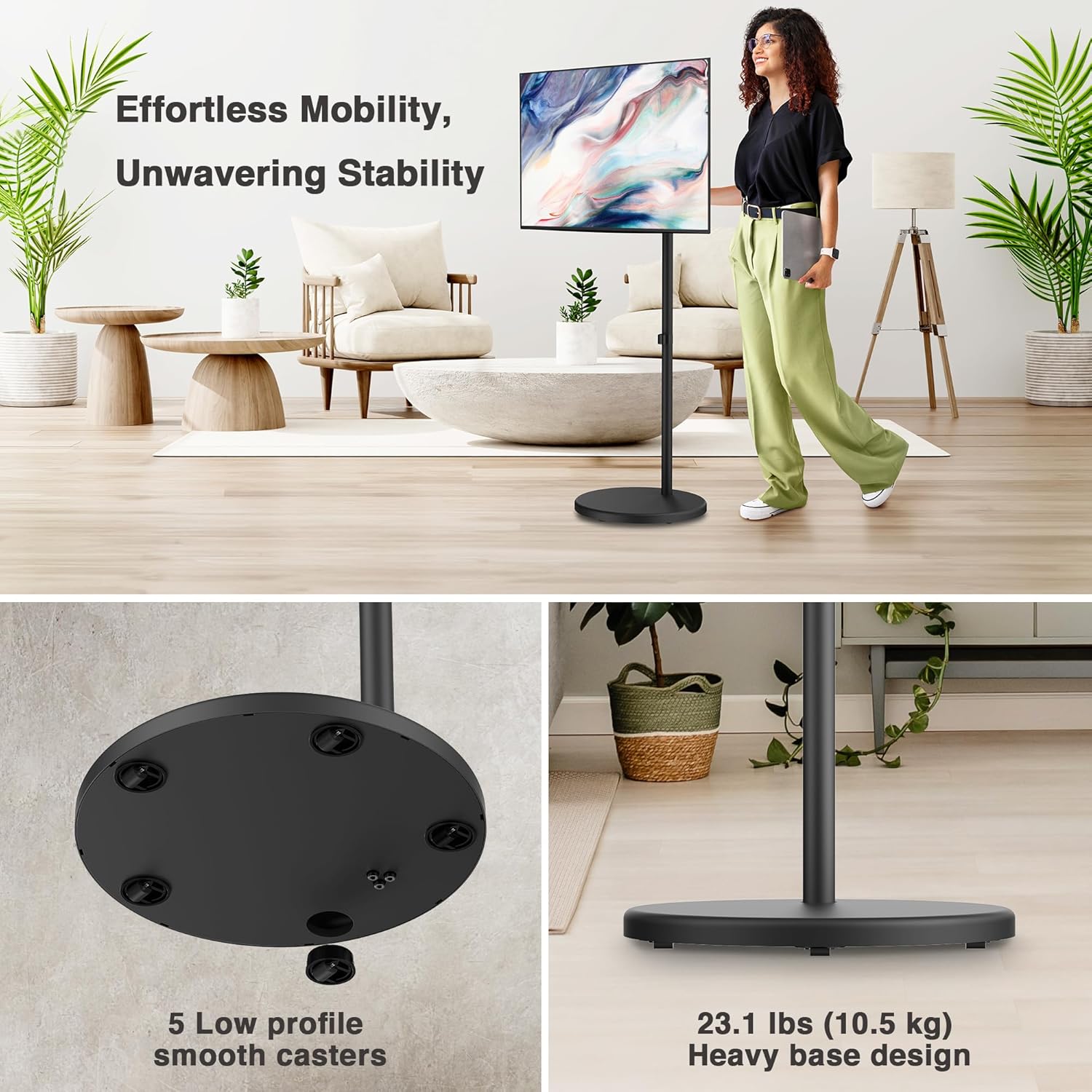 Beyond height, the stand offers full motion capabilities including +90° to -90° tilt, swivel, and rotation for portrait or landscape modes. A detachable VESA plate simplifies installation, while an integrated cable management system ensures your environment remains clutter-free. Whether you are giving a presentation in a meeting room or streaming in the bedroom, this stand provides stable, versatile placement on any hard floor or low-pile carpet.