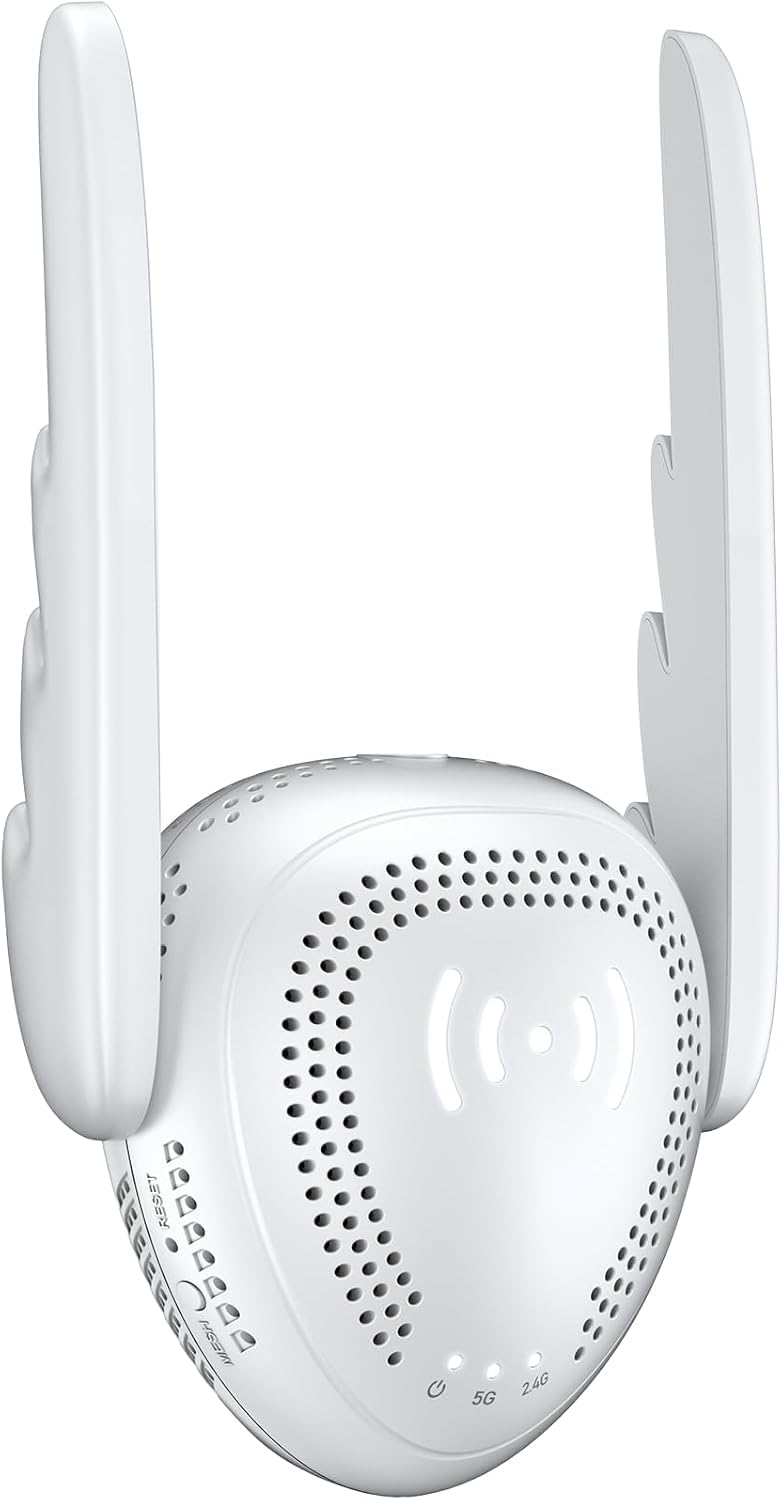 Say goodbye to spotty connections and buffering. Equipped with 2 high-gain external antennas and 4 advanced Front-End Modules (FEM), this device penetrates through walls, ceilings, and floors with ease. It expands your router’s coverage to a massive 20,000+ square feet, ensuring a strong, stable signal in hard-to-reach areas like the garage, basement, backyard, and upstairs bedrooms.