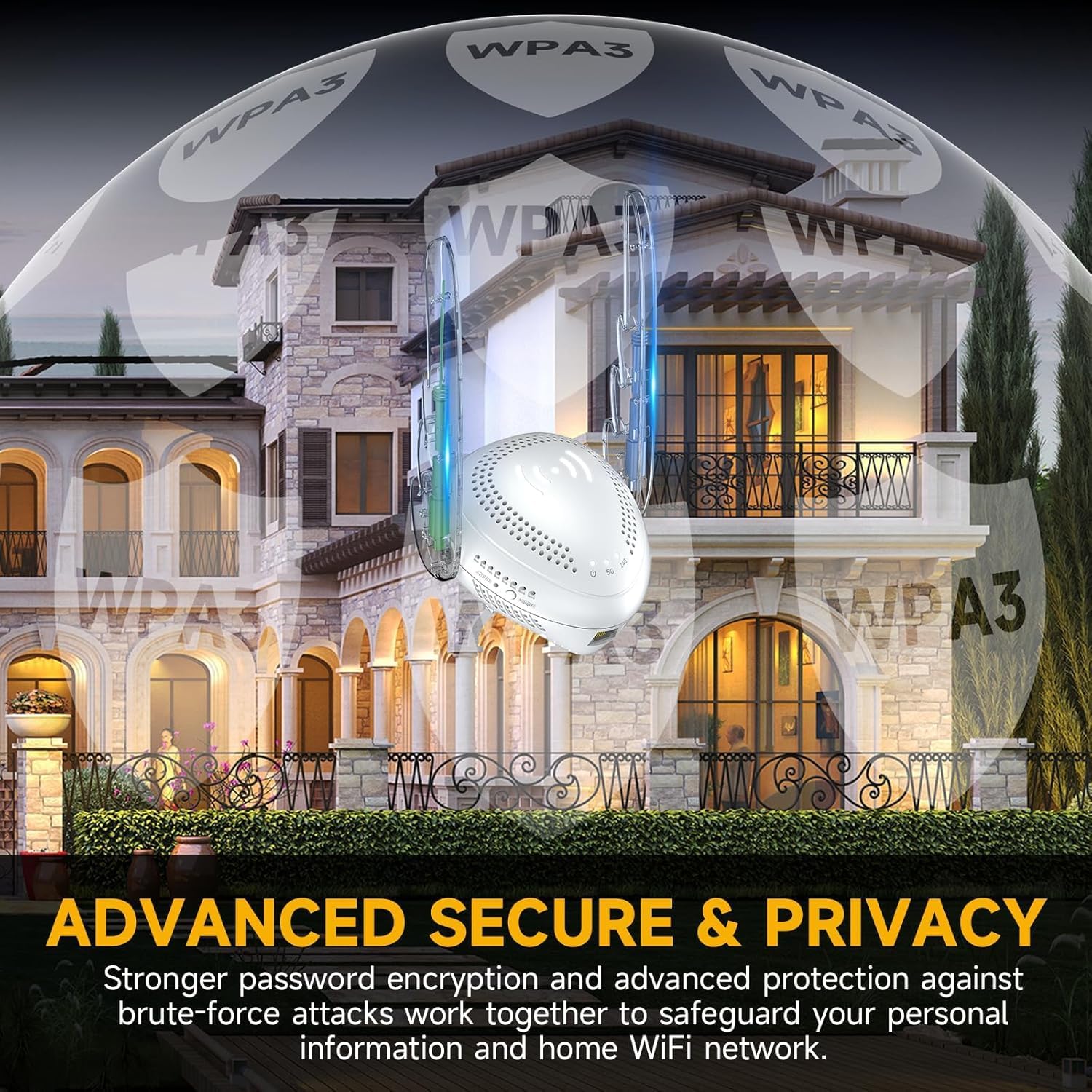 Protect your personal data and privacy with the upgraded WPA3 encryption protocol, offering a higher level of security against unauthorized access compared to WPA2. Installation is effortless—simply press the WPS button to pair with your router in seconds, or use the intuitive web interface/setup app. It features a smart signal indicator light to help you find the perfect placement for optimal performance.