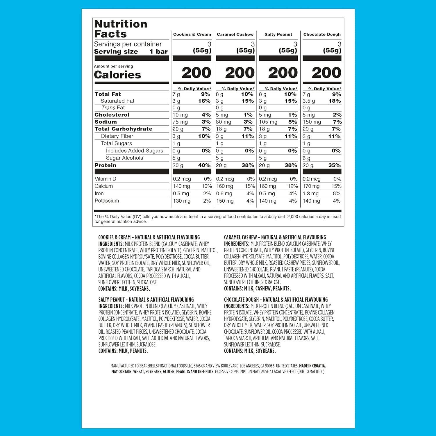 - VARIETY PACK SAMPLER: Includes 12 protein bars (1.9oz each) featuring 4 delicious flavors: (3) Cookies & Cream, (3) Caramel Cashew, (3) Salty Peanut, and (3) Chocolate Dough.