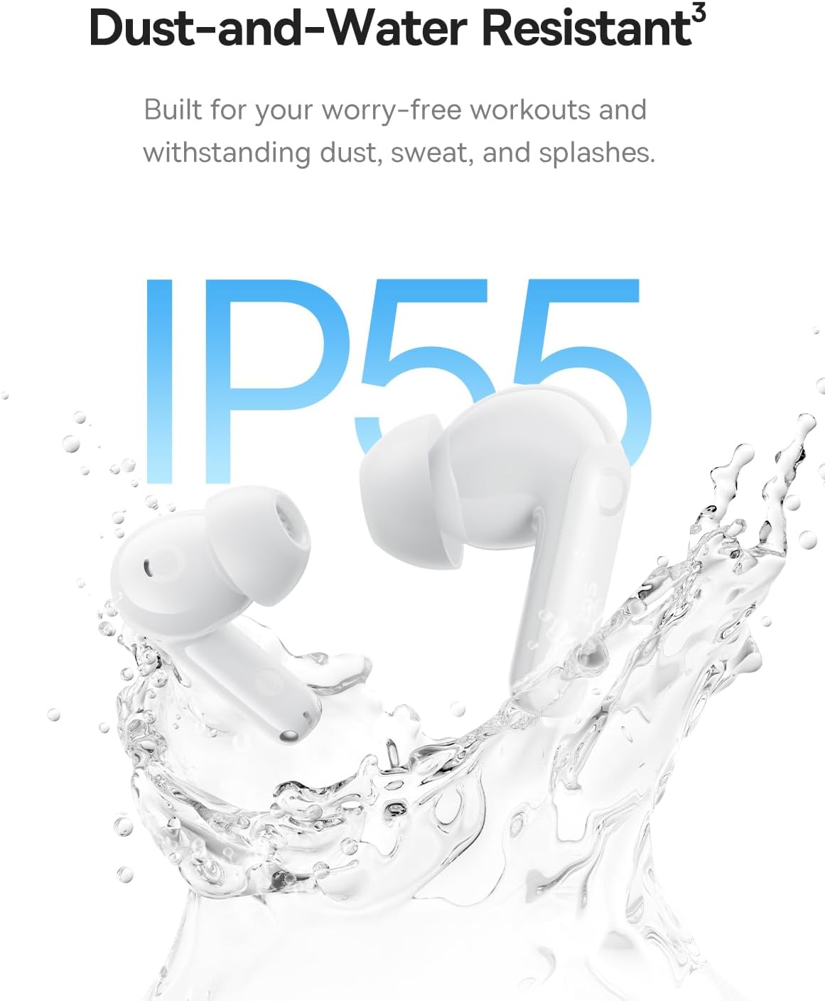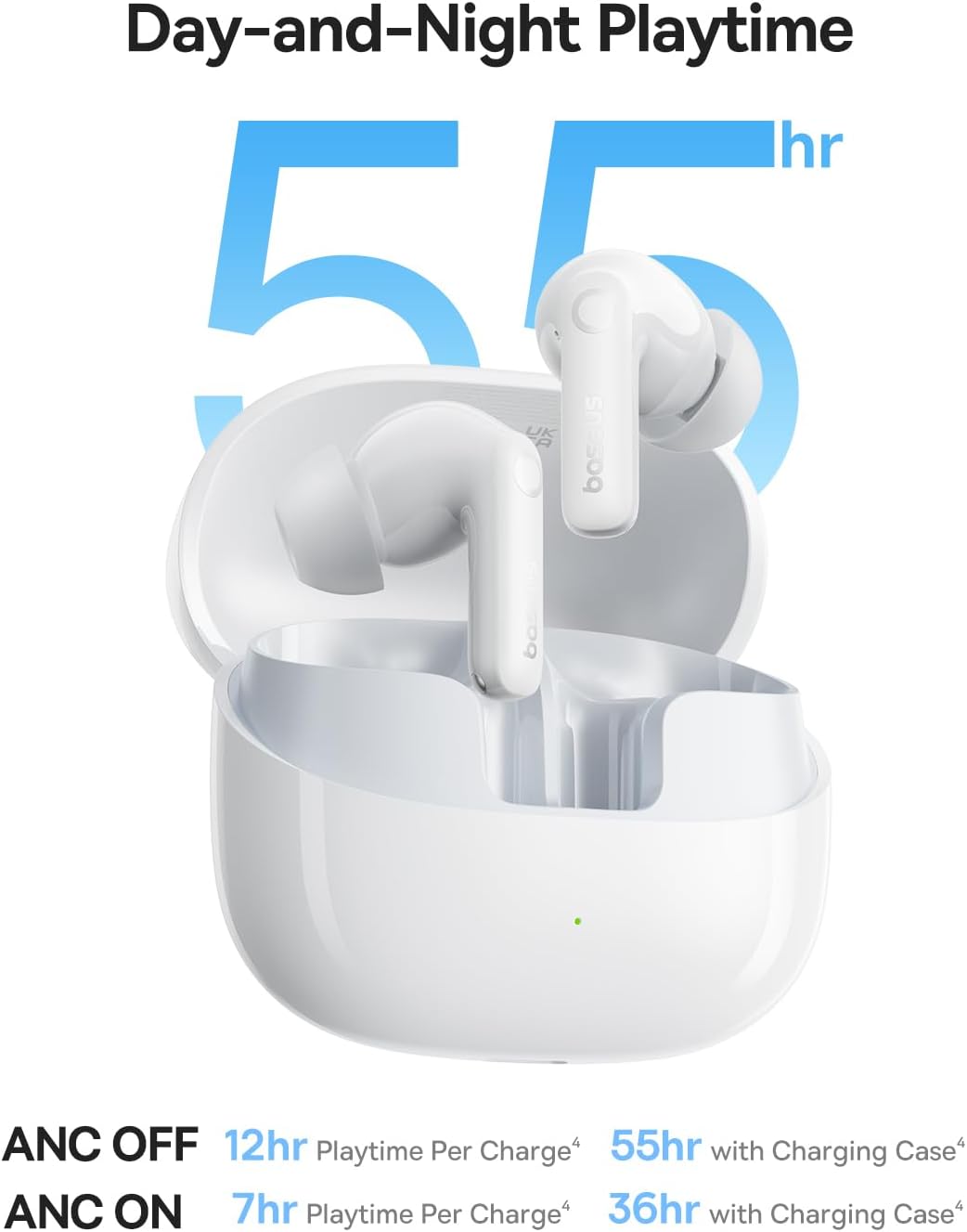 Keep the music playing from dawn till dusk. Enjoy up to 12 hours of playtime on a single charge (ANC off), with a massive total of 55 hours when using the charging case. If you are in a rush, a quick 10-minute charge via Baseus Rapid Charge (BRC) provides an additional 2.5 hours of listening. Built with an IP55 water-resistance rating, these earbuds are protected from sweat, splashes, and dust, making them your ideal companion for intense workouts and daily adventures.