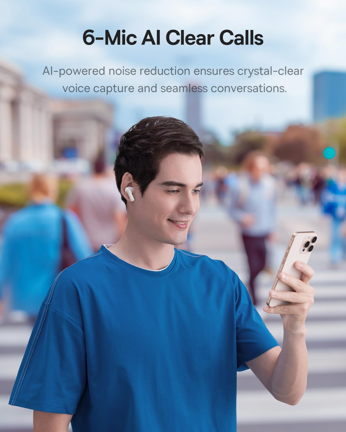 Never miss a word. The six-microphone array, enhanced by AI noise reduction algorithms, isolates your voice while blocking out background wind and noise. This makes the BP1 Pro perfect for crystal-clear conference calls and voice chats even in busy streets or noisy cafes.