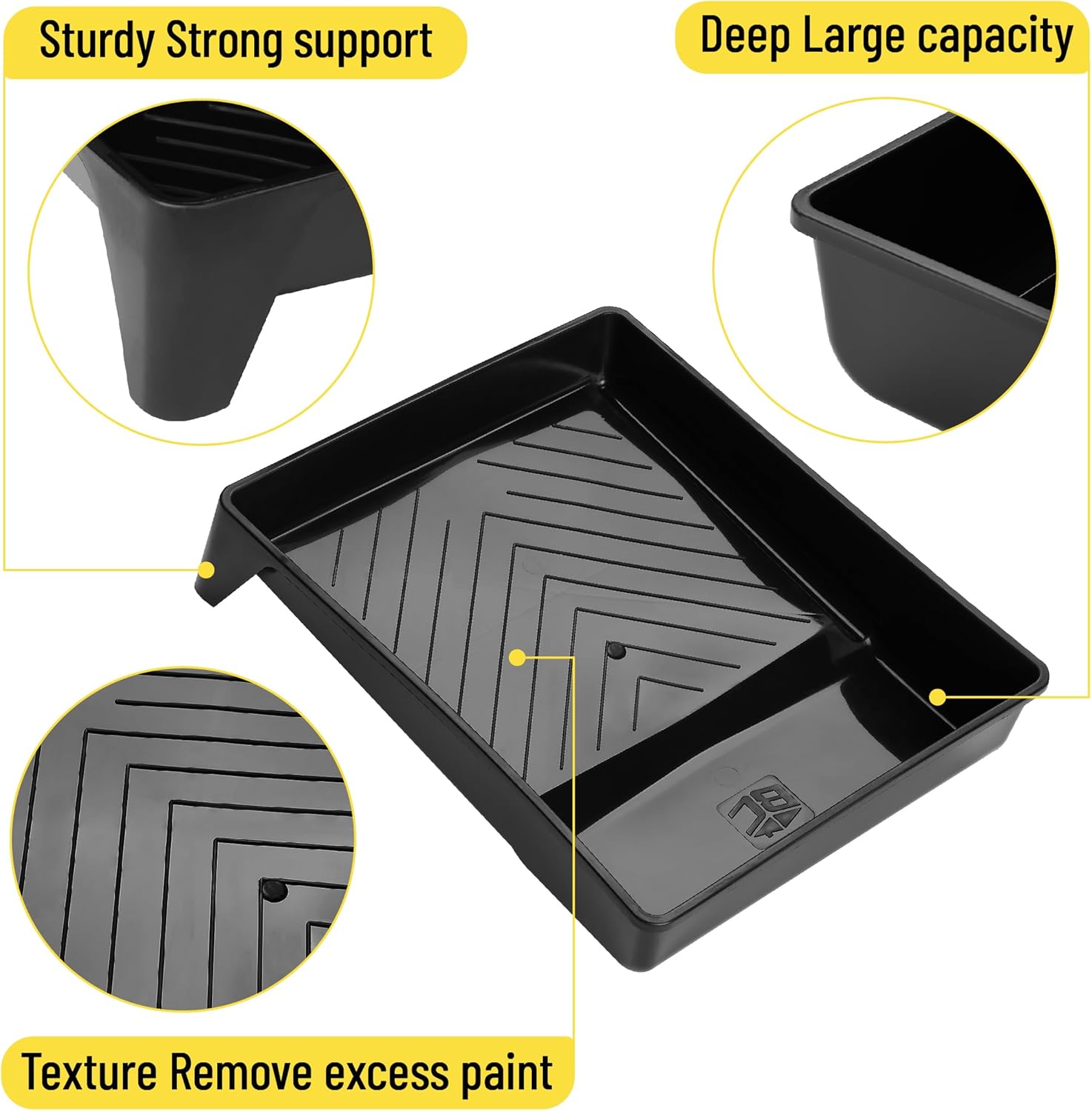 Each tray is engineered from durable, high-impact black plastic that resists cracking and bending, ensuring longevity through repeated use. The generous 11″ x 14.5″ dimensions and deep well design allow for ample paint loading, reducing the frequency of trips back to the paint can.