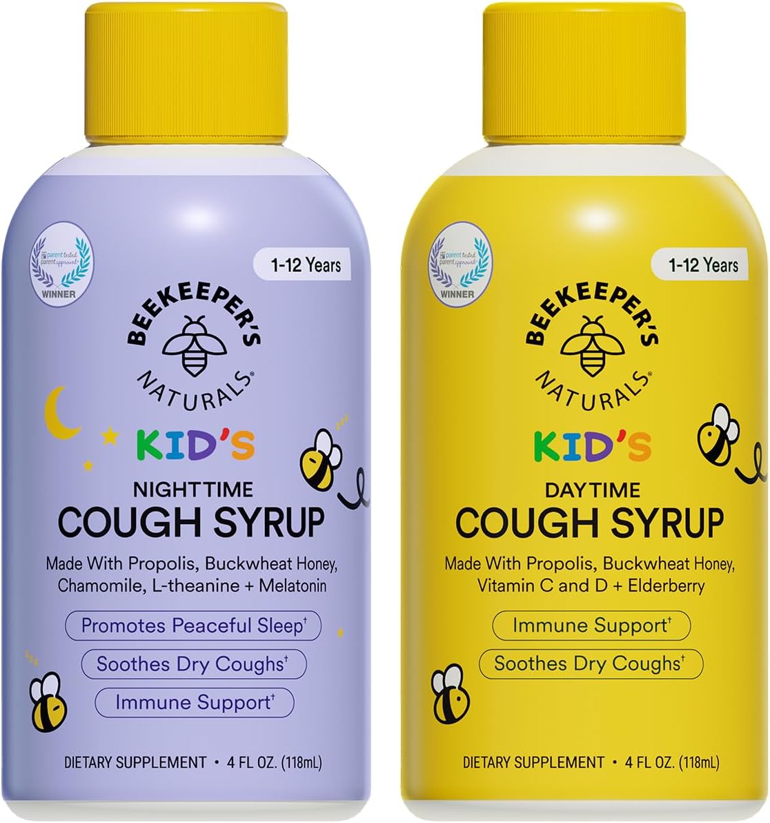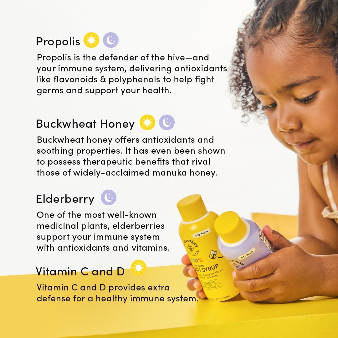 Soothe your little one’s cough and bolster their immune system naturally with the Beekeeper’s Naturals Kids Honey Cough Syrup Value Pack. This comprehensive bundle includes both Daytime and Nighttime formulas, ensuring your child receives targeted relief and restorative rest around the clock. Powered by nature’s most potent ingredients, each serving is packed with dark buckwheat honey, elderberry, Vitamin C, Vitamin D, and bee propolis to support immune health and recovery. The Daytime formula focuses on soothing sore throats and supporting respiratory comfort, while the Nighttime formula promotes deep, restful sleep so the whole family can rest easy. Beekeeper’s Naturals is dedicated to clean medicine; this syrup is free from artificial colors, dyes, refined sugars, and unnecessary chemicals, offering a safe and effective alternative to traditional cough medicines. Whether it’s seasonal allergies or a winter cold, this non-toxic, gluten-free syrup is the go-to choice for parents seeking fast-acting, natural relief for their children.