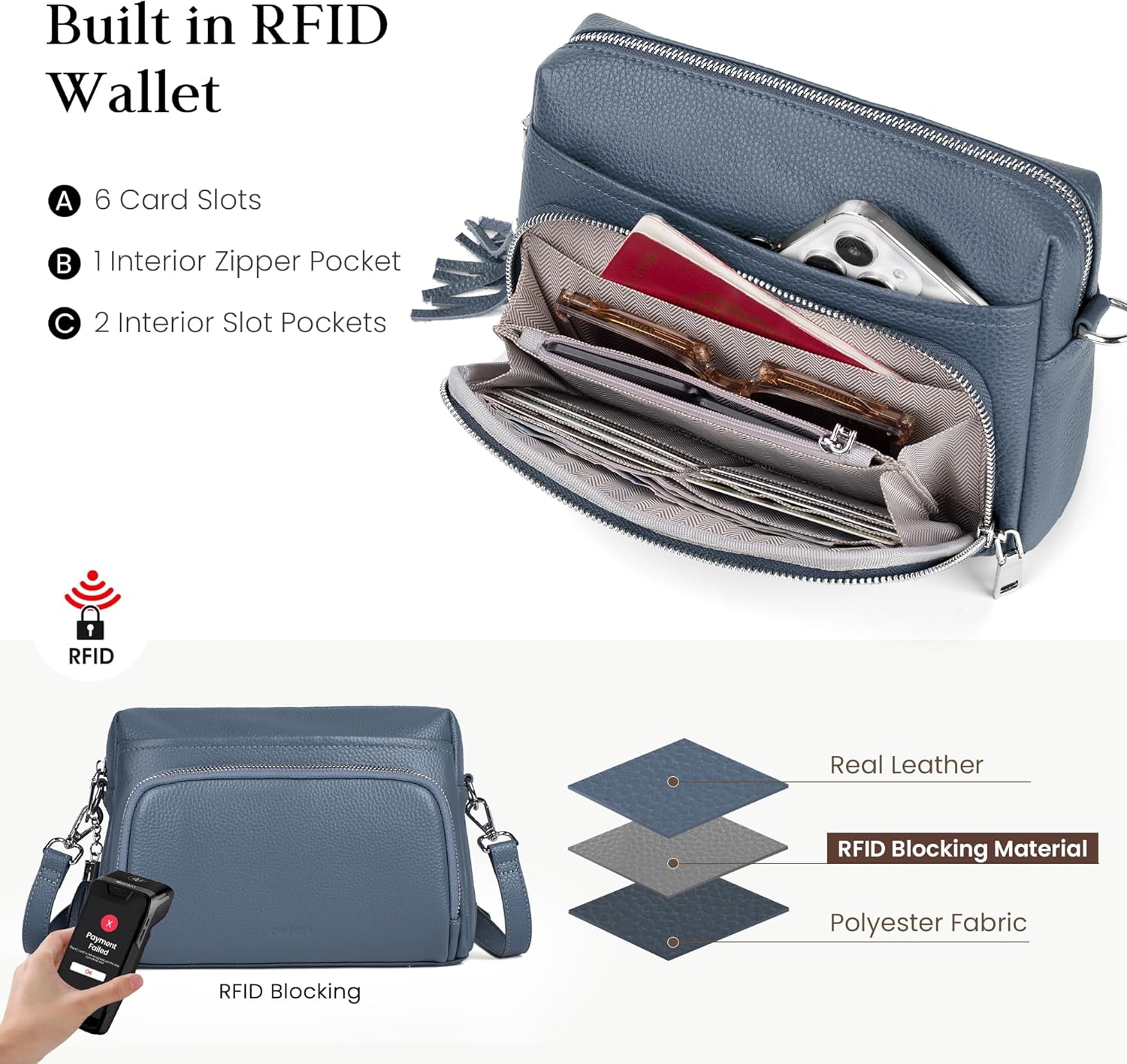 • All-in-One Design: Combines the functionality of a wallet and the capacity of a purse.
