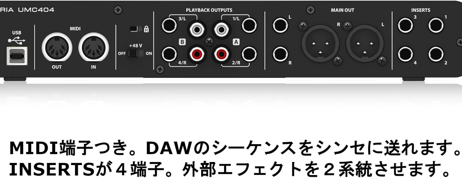 The UMC404HD features studio-grade 24-Bit/192 kHz converters, providing the highest audio resolution available for your computer-based DAW. Each channel includes +48V phantom power, making it compatible with high-end condenser microphones. The intuitive interface allows you to record, edit, and mix your projects with ease, making it an ideal choice for singer-songwriters, producers on the go, and musicians needing a reliable solution for live backing tracks.