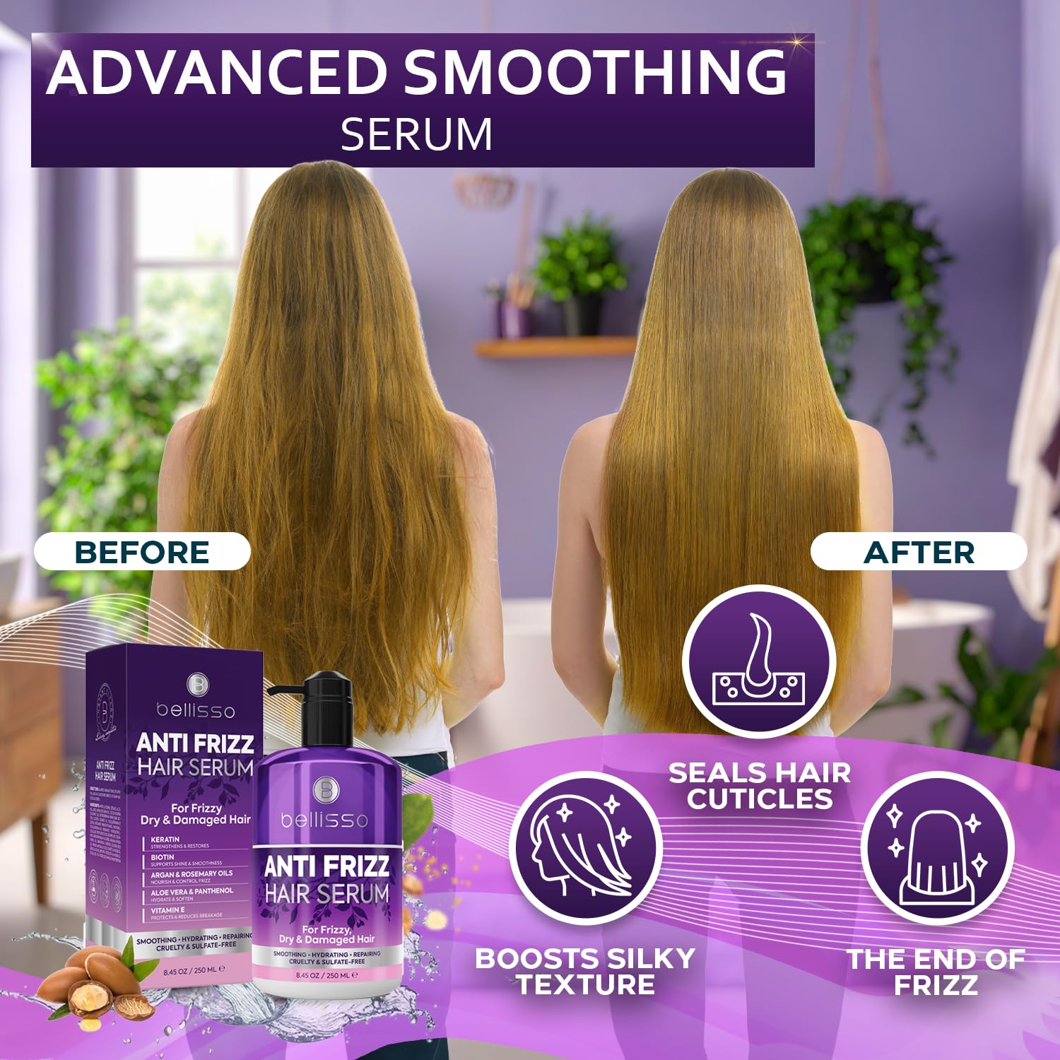 Lightweight & Non-Greasy: Unlike heavy oils that weigh hair down, Bellisso’s serum is ultra-lightweight. It absorbs instantly to smooth flyaways and control frizz, leaving your hair feeling natural, buoyant, and full of movement.
