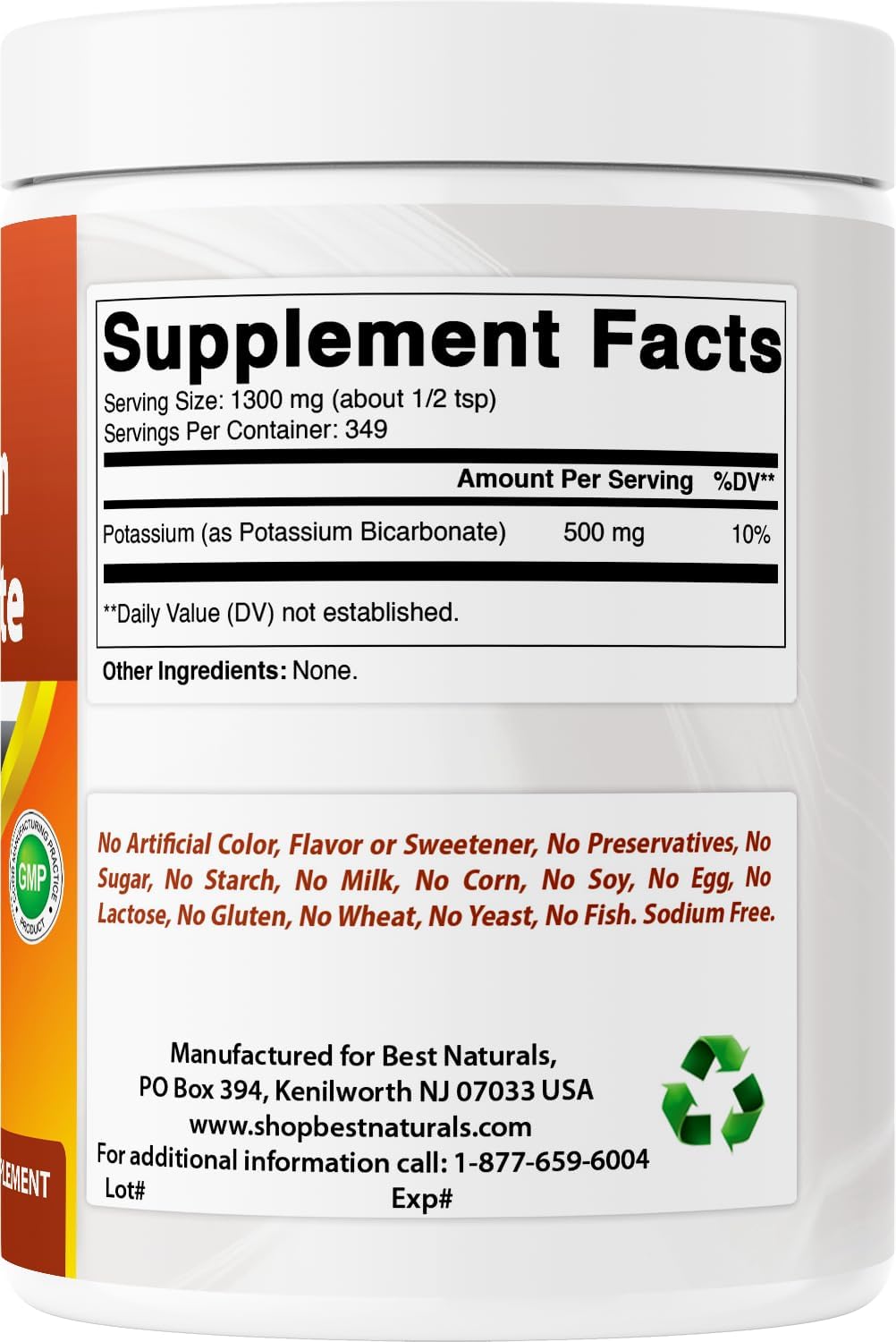 Best Naturals Pure Potassium Bicarbonate Powder – 1 lb (16 oz) – Essential Electrolyte Support, pH Balance & Muscle Function – Unflavored, Gluten-Free, Non-GMO, Made in USA