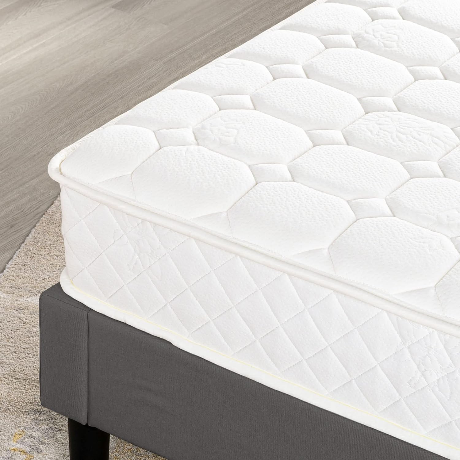Layers of high-density CertiPUR-US certified foam sit atop the spring unit, offering pressure-relieving cushioning without compromising the firm feel. The mattress is encased in a soft, durable poly-jacquard fabric cover with fiber padding, adding a plush touch to the surface. Backed by a 10-year warranty, this mattress meets rigorous standards for content, emissions, and durability, ensuring you sleep soundly and safely.