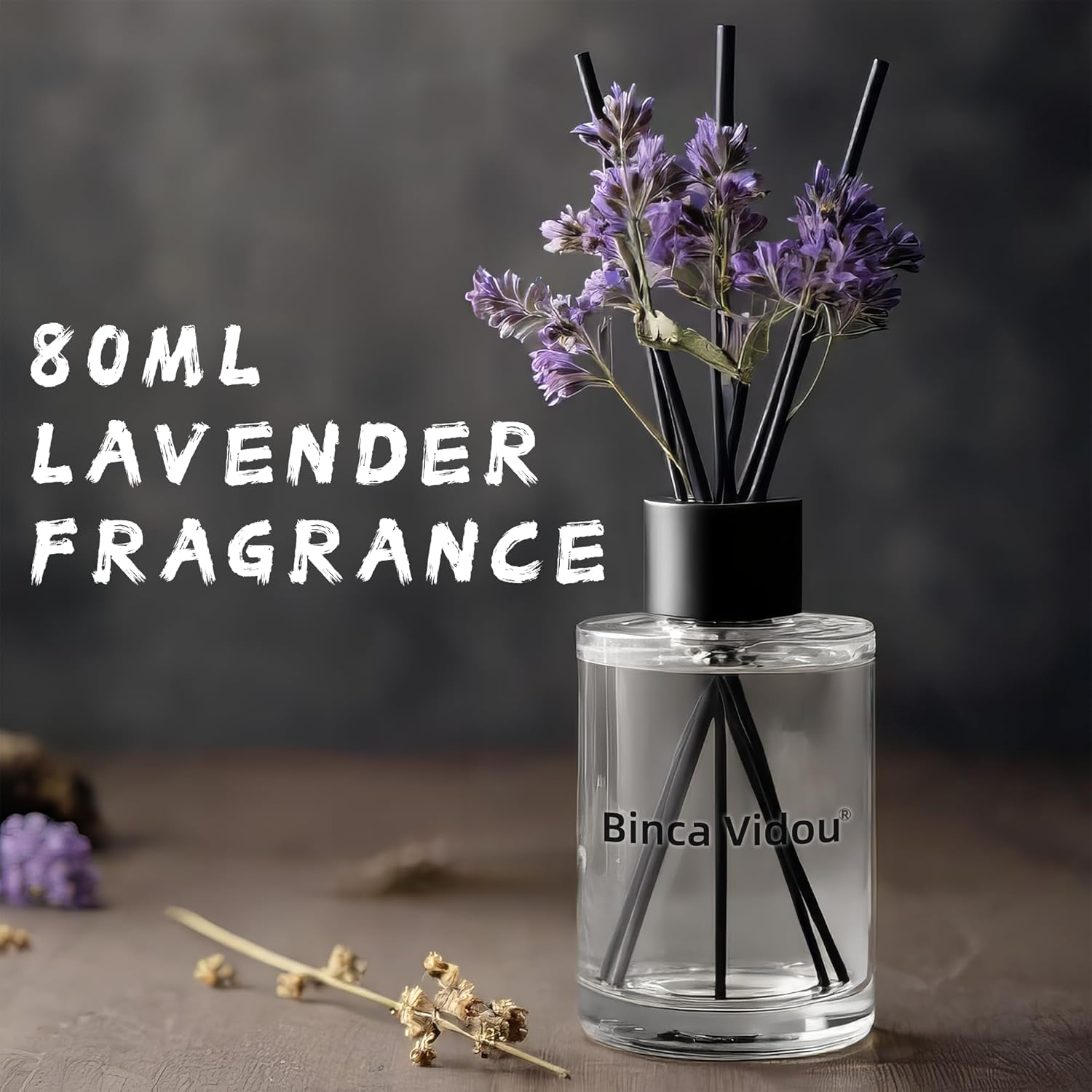 **Elevate Your Space:** Infuse your home with the soothing scent of lavender. This 80ml Binca Vidou Reed Diffuser Set offers 40-60 days of continuous, flame-free fragrance, perfect for stress relief and aromatherapy.