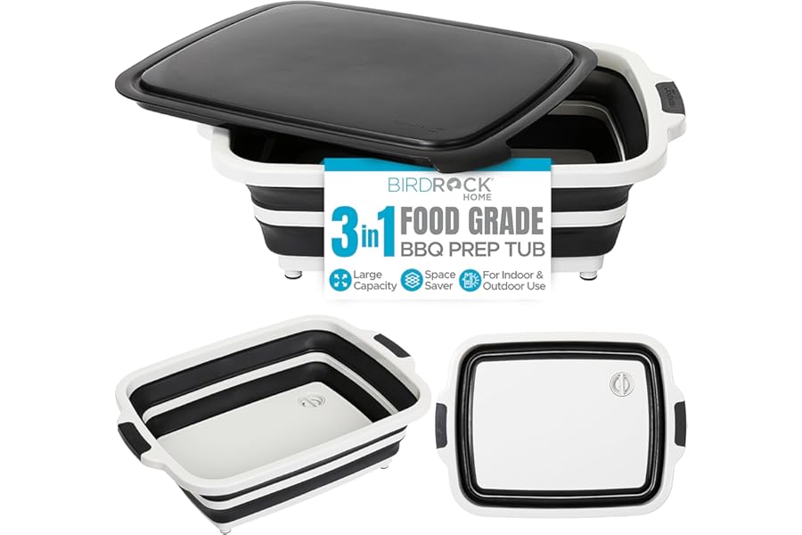 • BIRDROCK HOME Collapsible Large BBQ Prep Tub w/Cutting Board.