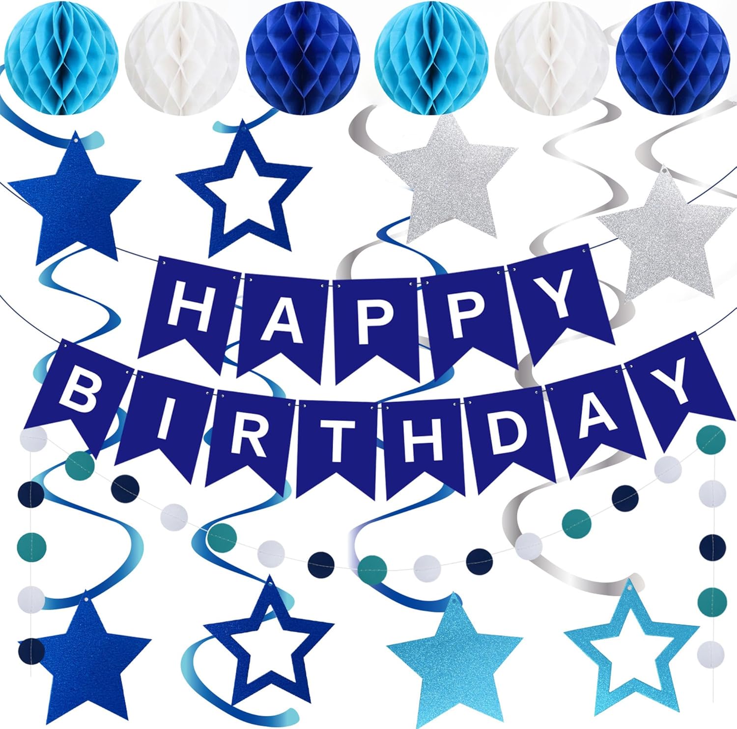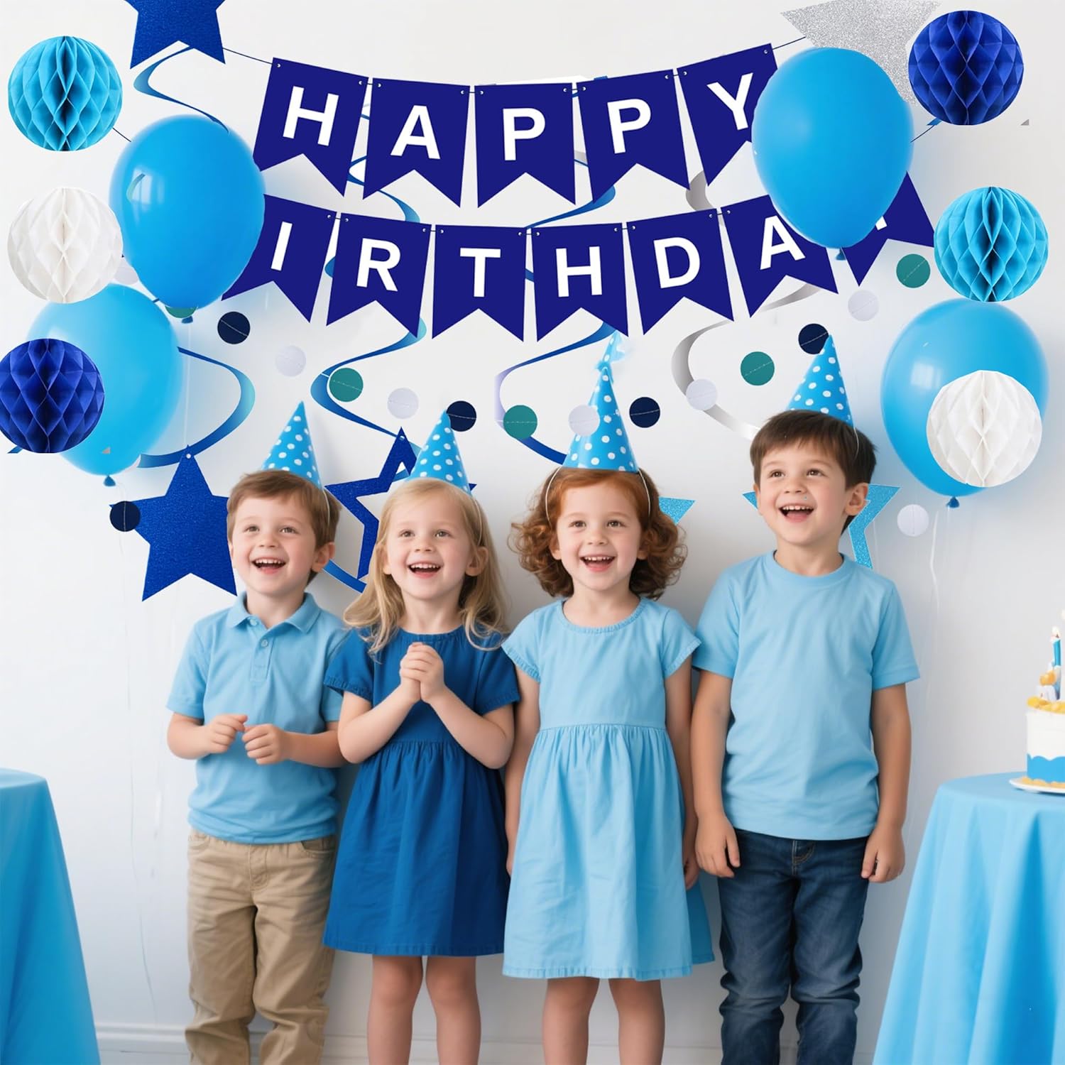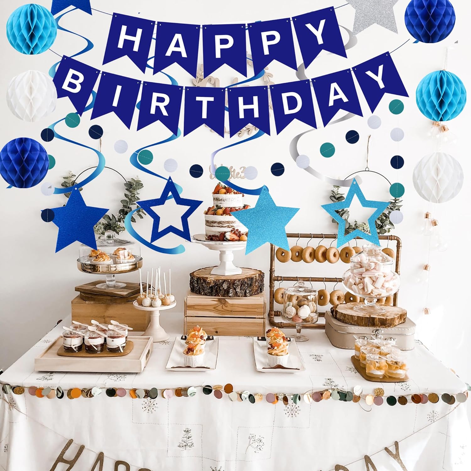 Blue Birthday Party Decorations Kit – Premium Honeycomb Balls, Swirls & Banner Set for Men, Women, Boys & Girls