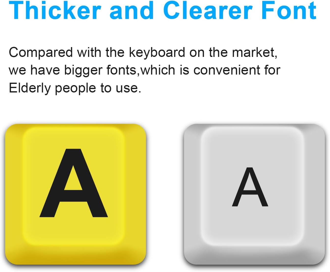 ENHANCED VISIBILITY & ACCESSIBILITY: Designed specifically for individuals with visual impairments or low vision, the BOOGIIO Large Print Keyboard features oversized, high-contrast yellow keycaps with bold black lettering. This specialized color scheme significantly improves readability, reducing eye strain and making typing easier and more accurate for seniors and those with macular degeneration or glaucoma.