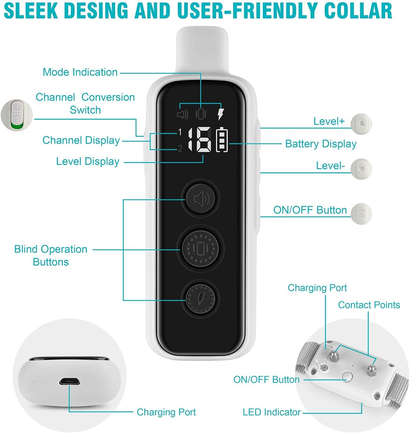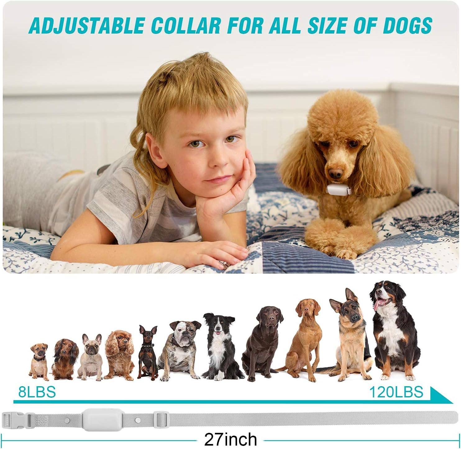 Streamline your dog’s training routine with the Bousnic Electronic Dog Training Collar, designed for efficiency and ease of use. Whether you are teaching basic obedience or correcting unwanted behaviors, this system provides the control you need with humane, adjustable stimulation options. The collar features three distinct training modes: a standard Beep for warning or attention, a Vibration mode for gentle correction, and a Safe Shock mode with 16 adjustable intensity levels to suit dogs of various temperaments and sizes. With an impressive remote range of nearly 1000ft, you have the freedom to train your dog in the backyard, the park, or by the beach without losing connection. The ergonomic remote is designed for comfort and features a dual-channel capability, allowing you to train two dogs simultaneously (extra collar receiver required). Built to withstand active outdoor play, the collar receiver is IPX7 waterproof, meaning it can handle rain, snow, and even submersion in water. Both the receiver and remote are equipped with high-capacity rechargeable batteries for long-lasting performance, ensuring your training sessions are never cut short. The receiver is lightweight and compact, fitting comfortably on dogs ranging from 8 to 120 lbs with an adjustable nylon strap (6-27 inches). Charge easily with the included USB cable and enjoy peace of mind with a reliable training tool.
