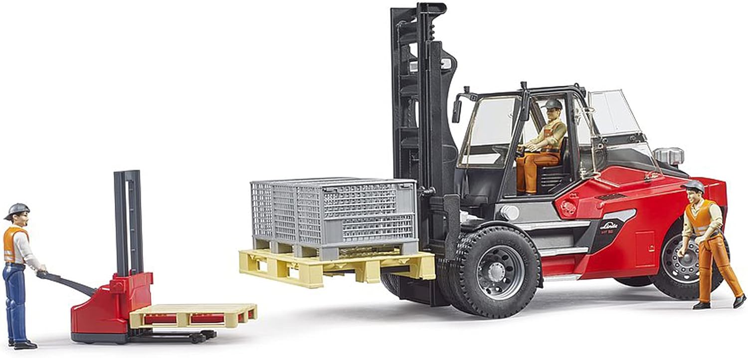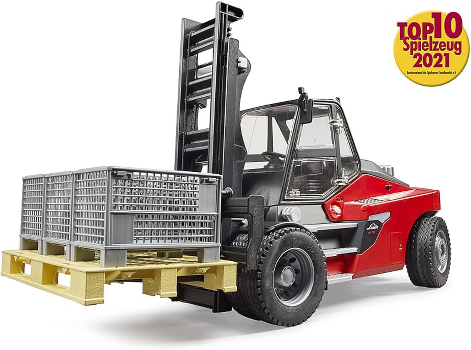 BRUDER Linde HTI60 Forklift Toy with Pallet & Cargo Cages – 1:16 Scale Model