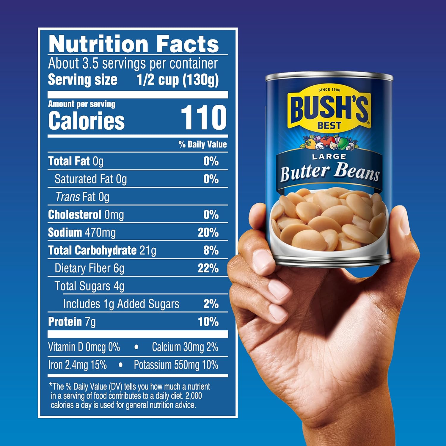 - Pack of 12: Includes twelve 16 oz cans of BUSH’S BEST Large Butter Beans.