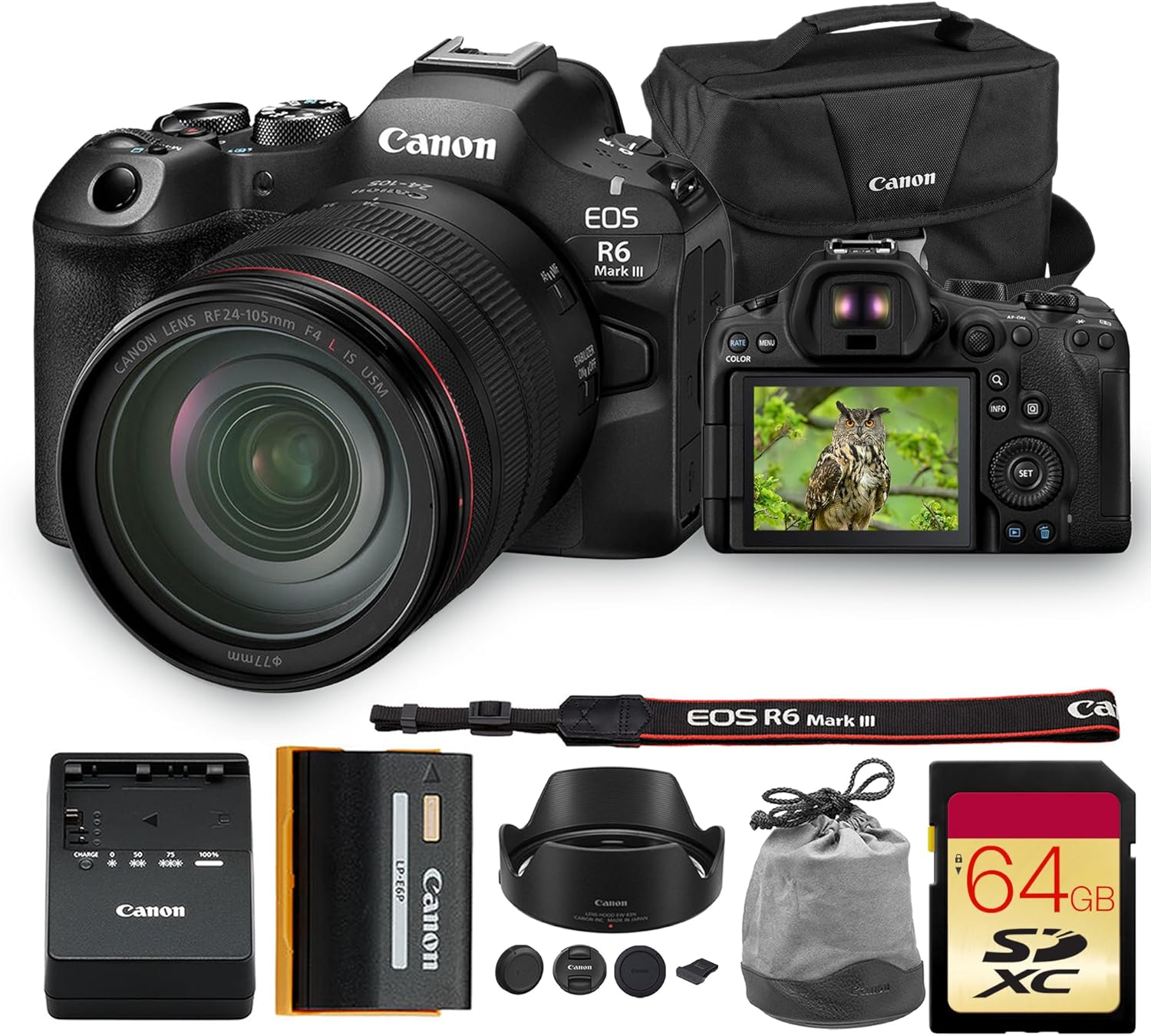 Canon EOS R6 Mark III Mirrorless Camera Kit with RF 24-105mm f/4L IS USM Lens | 32.5MP Full-Frame, 7K RAW Video & Advanced AF | Includes 64GB Card and Camera Bag