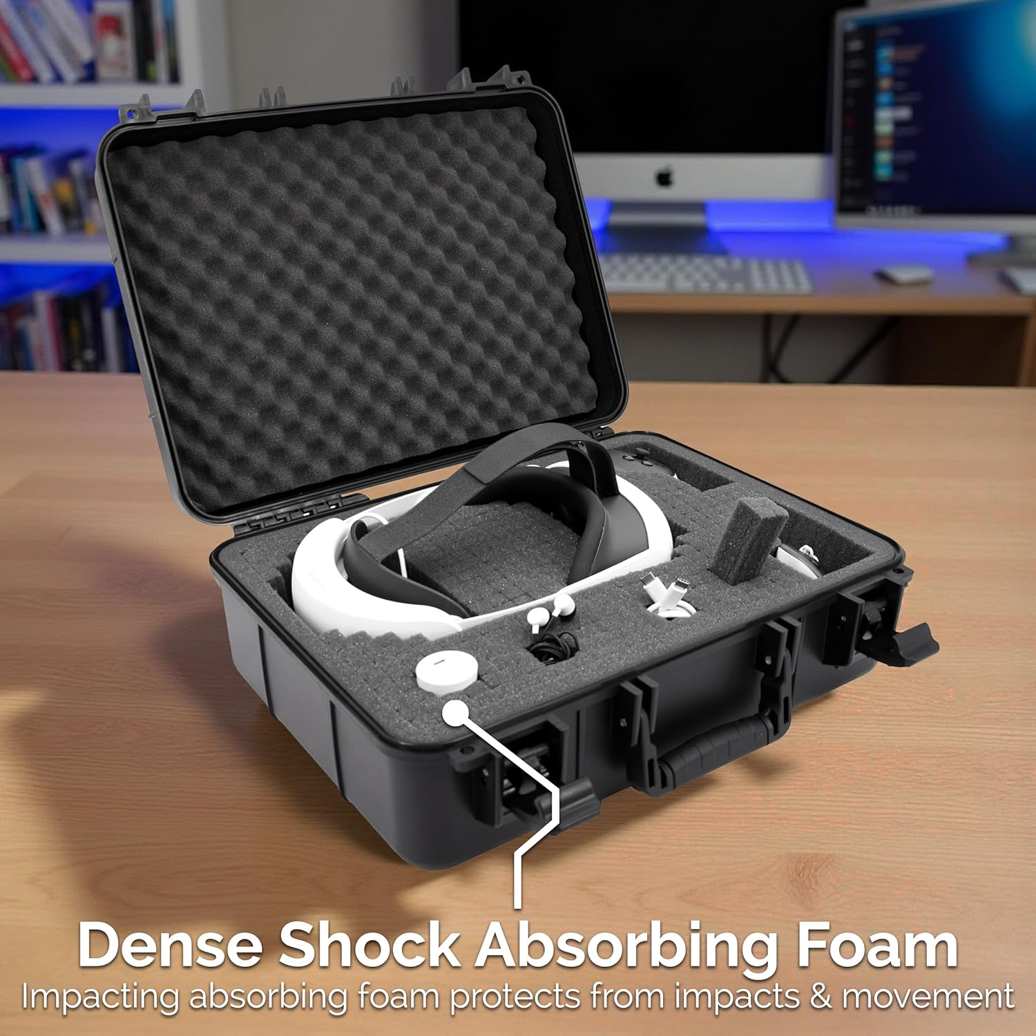 **SECURE STORAGE FOR TRAVEL:** Security is a priority. This case is equipped with reinforced stainless steel hinges and integrated padlock holes, allowing you to lock your case (padlock not included) for added security and peace of mind. Perfect for professionals, educators, or VR enthusiasts who demand the highest level of protection for their virtual reality gear.