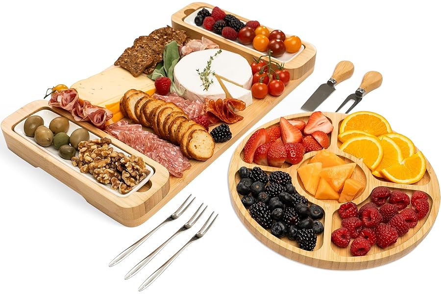 Charcuterie Board Gift Set – Bamboo Cheese Board & Serving Tray for Meat, Cheese, Crackers, Fruit – Large Wooden Charcuterie