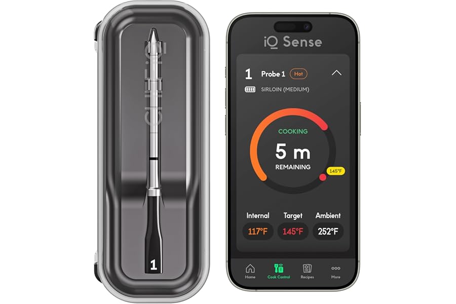 Leave the grill and enjoy the party without worrying about overcooked food. The CHEF iQ Sense smart thermometer provides unlimited range monitoring and five sensors to guide you to a perfect, juicy result every single time. Its ultra-thin, heat-safe probe is built for precision, giving you the confidence to cook like a professional chef.