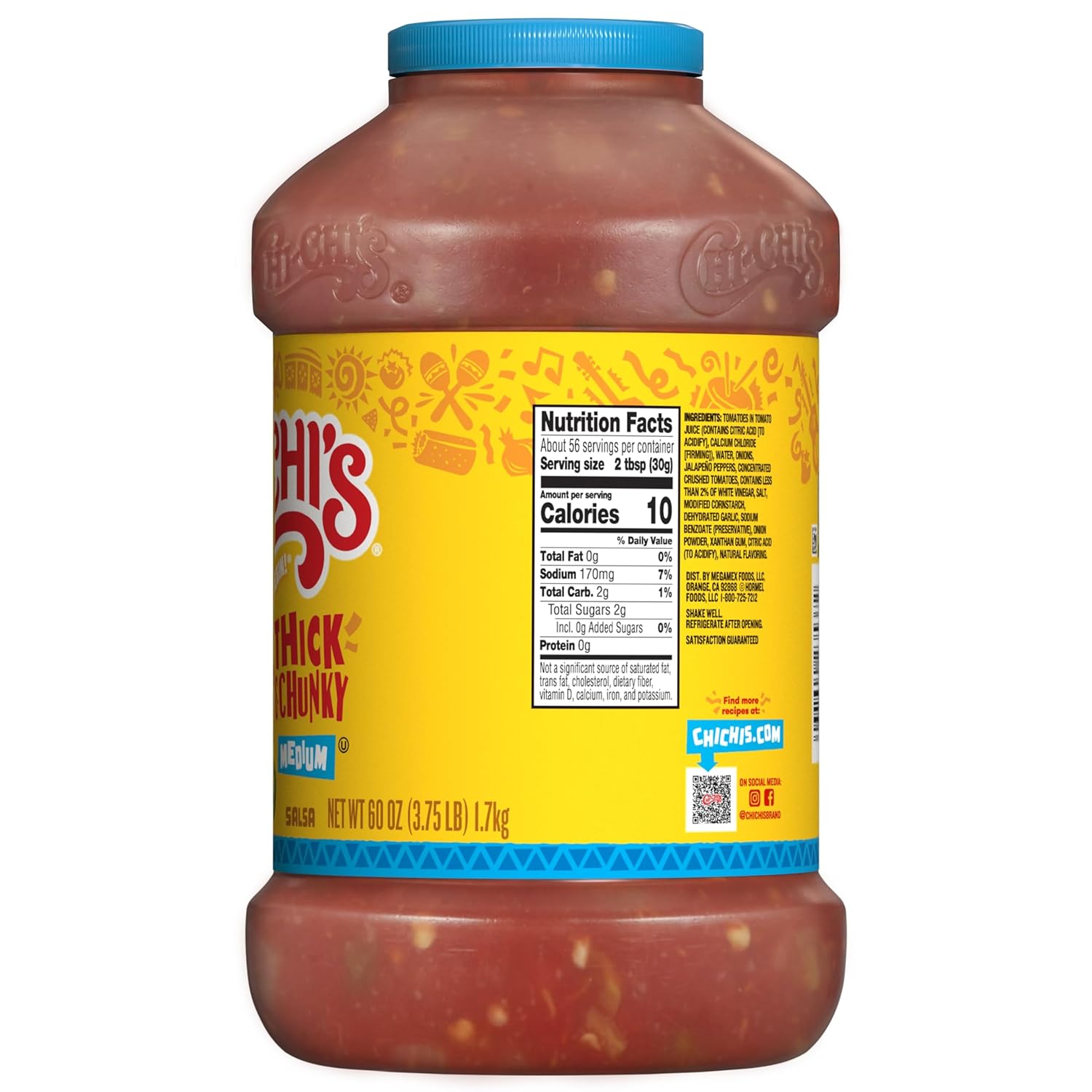 Bring the bold, irresistible taste of a Mexican restaurant to your kitchen with Chi-Chi’s Thick and Chunky Medium Salsa. Expertly crafted to deliver the perfect balance of diced tomatoes, crisp onions, and fresh cilantro, this salsa offers a satisfying texture and a medium spice level that delights without overwhelming. This massive 60-ounce jar is perfect for families, frequent entertainers, or anyone who loves a zesty snack. Whether you are dipping tortilla chips, topping off a sizzling plate of beef fajitas, or adding a punch of flavor to your favorite recipes, Chi-Chi’s provides authentic flavor that is ‘música for your mouth.’