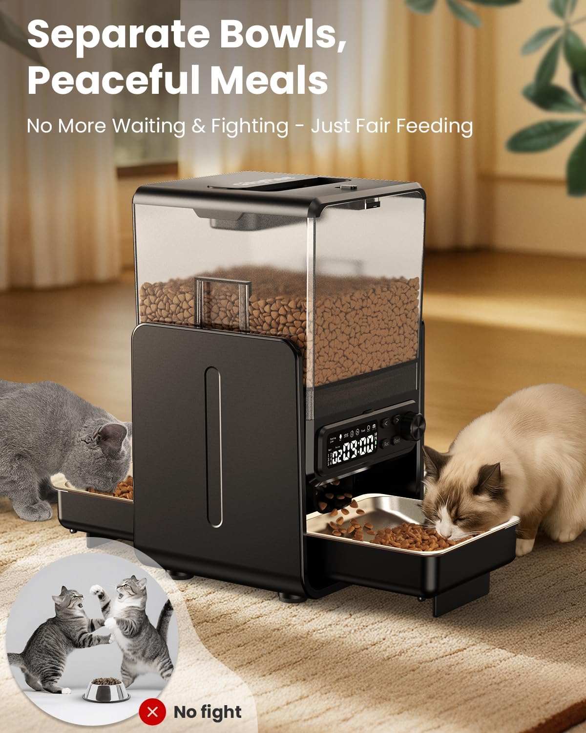 Designed for Comfort & Harmony: We understand that mealtime can be stressful. That’s why this feeder features two height settings (2.36″ or 3.54″) to reduce neck strain and a wide 12-inch bowl spacing. This design allows two cats to eat side-by-side comfortably, eliminating food fights and promoting peaceful digestion.