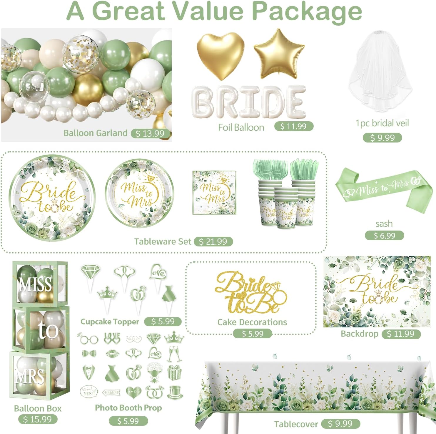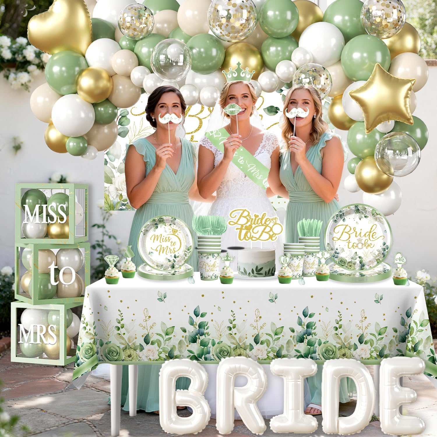 From the sage green and gold color palette to the high-quality materials—including sturdy paper plates, eco-friendly latex balloons, and a reusable fabric backdrop—every detail is curated to create an Instagram-worthy celebration. Whether you are hosting a sophisticated brunch, an engagement party, or the ultimate bachelorette bash, this worry-free set ensures you spend more time making memories and less time planning. Setup is a breeze with the included instructions and assembly tools, while the easy-clean disposable tableware lets you enjoy the party without the aftermath of a mess.