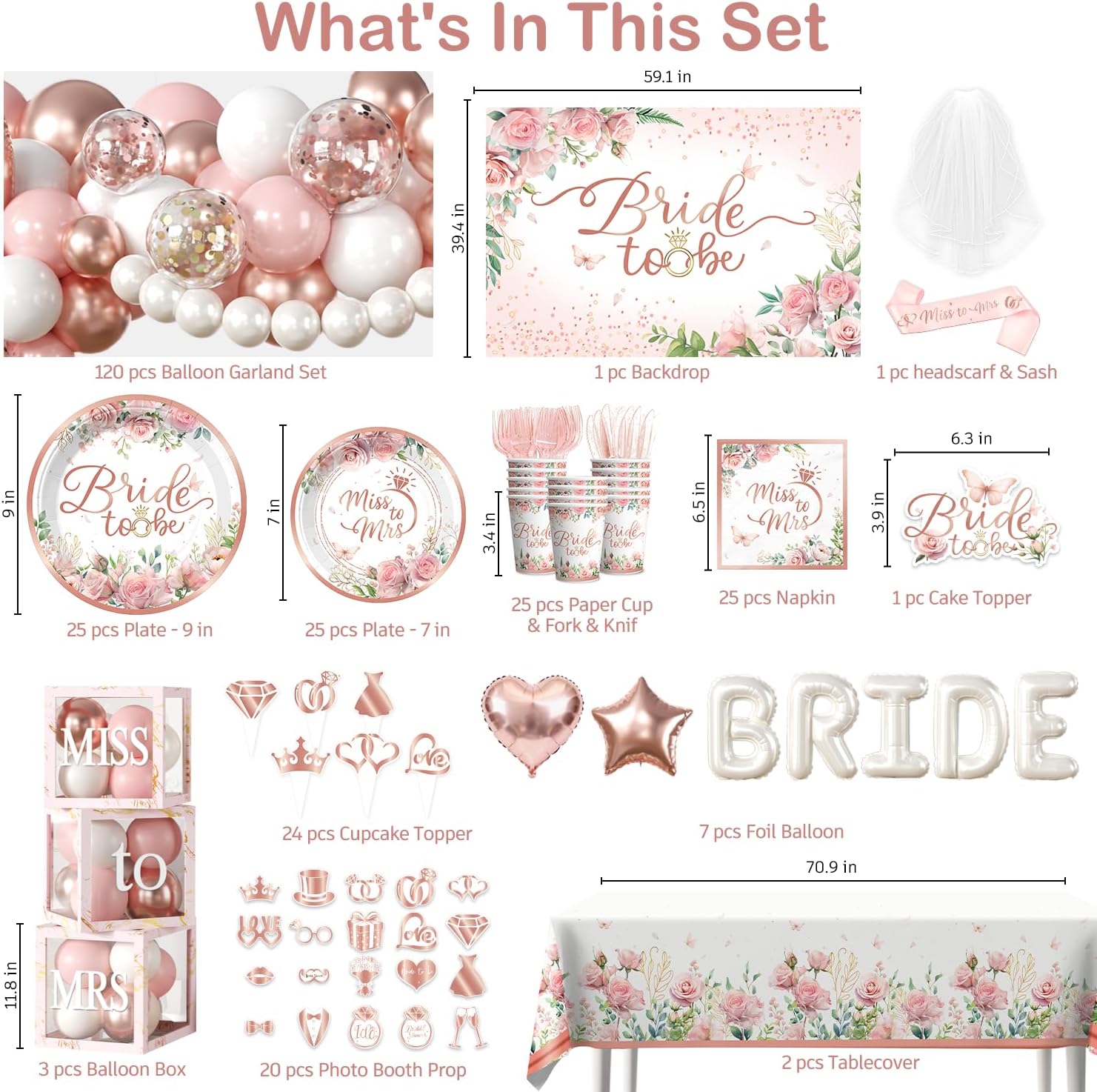 THE COMPLETE ENTERTAINMENT PACKAGE: More than just tableware, this kit boosts the fun with 20 themed photo props, a playful veil, a sash for the guest of honor, and a stunning backdrop for Instagram-worthy snapshots. Whether you are hosting an intimate indoor gathering or a lavish outdoor garden party, this kit sets the stage for memories that will last a lifetime.