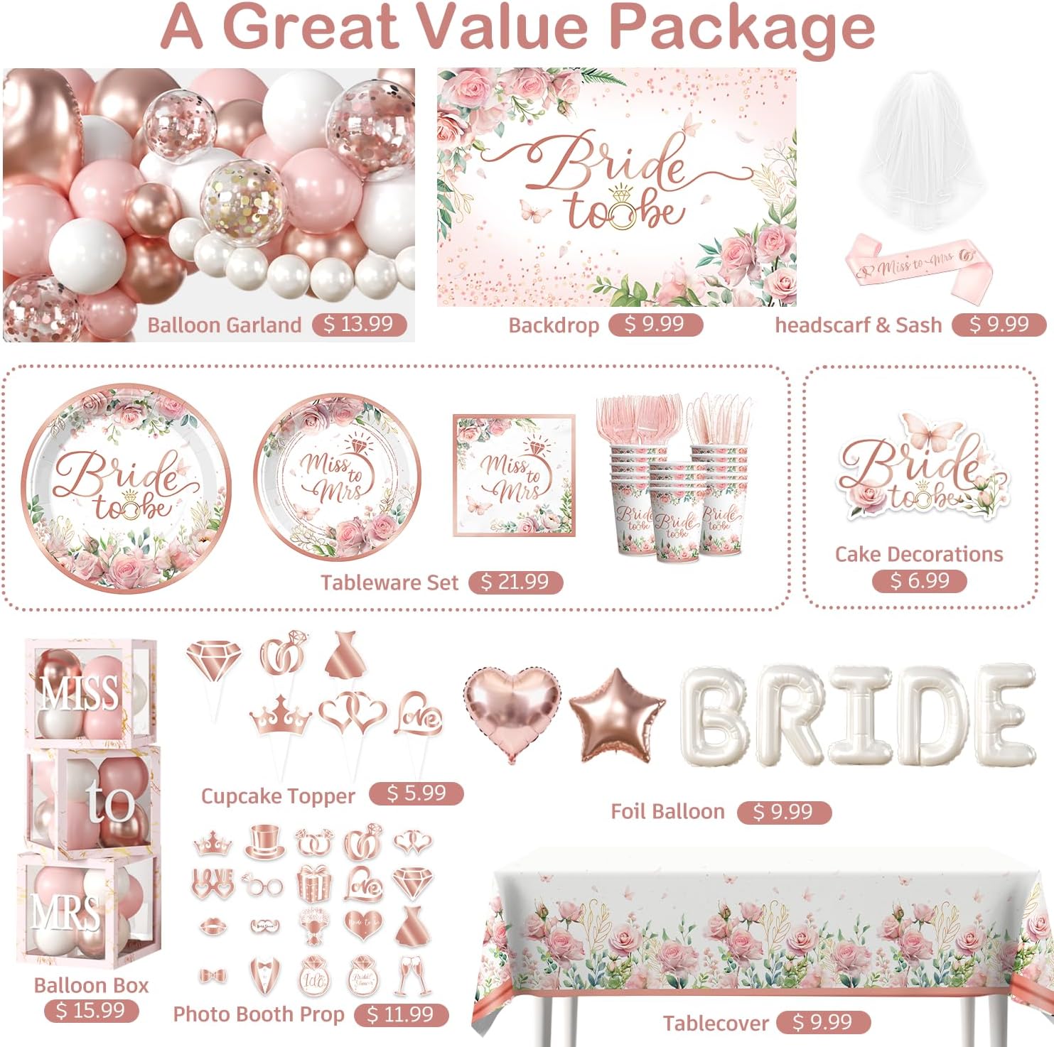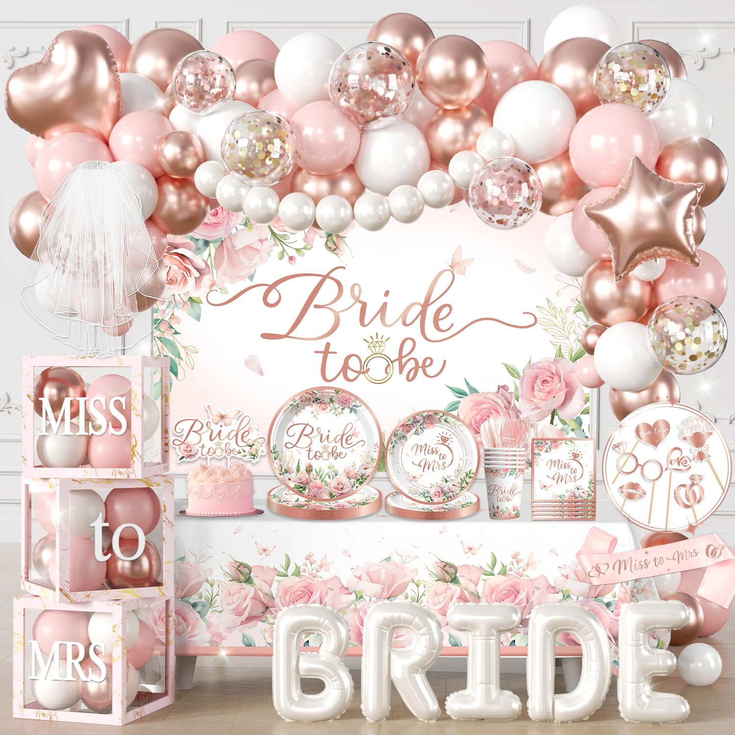 UNBEATABLE CONVENIENCE: We know your time is precious. That’s why this set includes disposable cutlery, cups, and napkins—simply toss them when the party ends for a hassle-free cleanup. The clear assembly instructions included make setting up the balloon boxes and arch quick and easy, so you can focus on celebrating the bride-to-be.