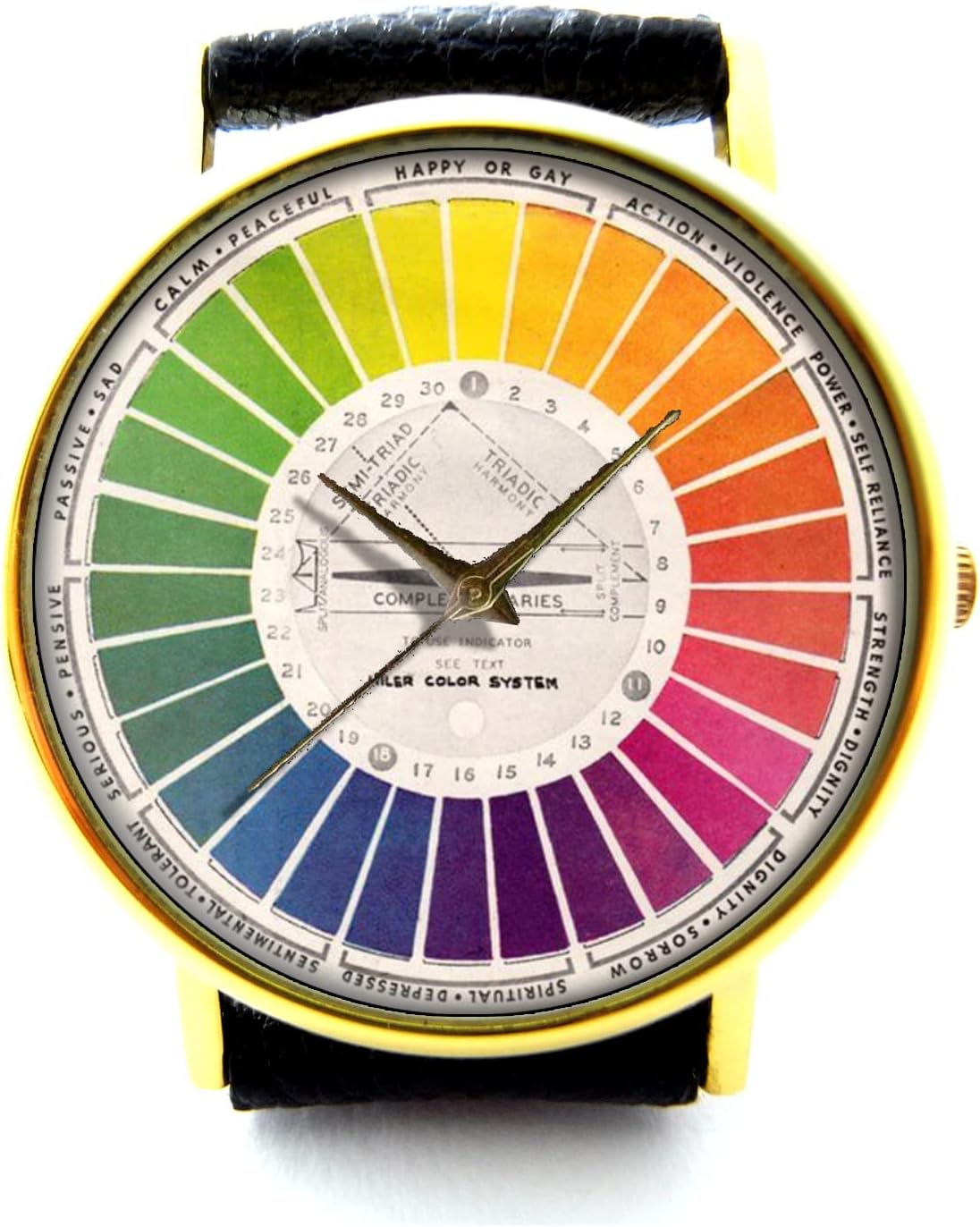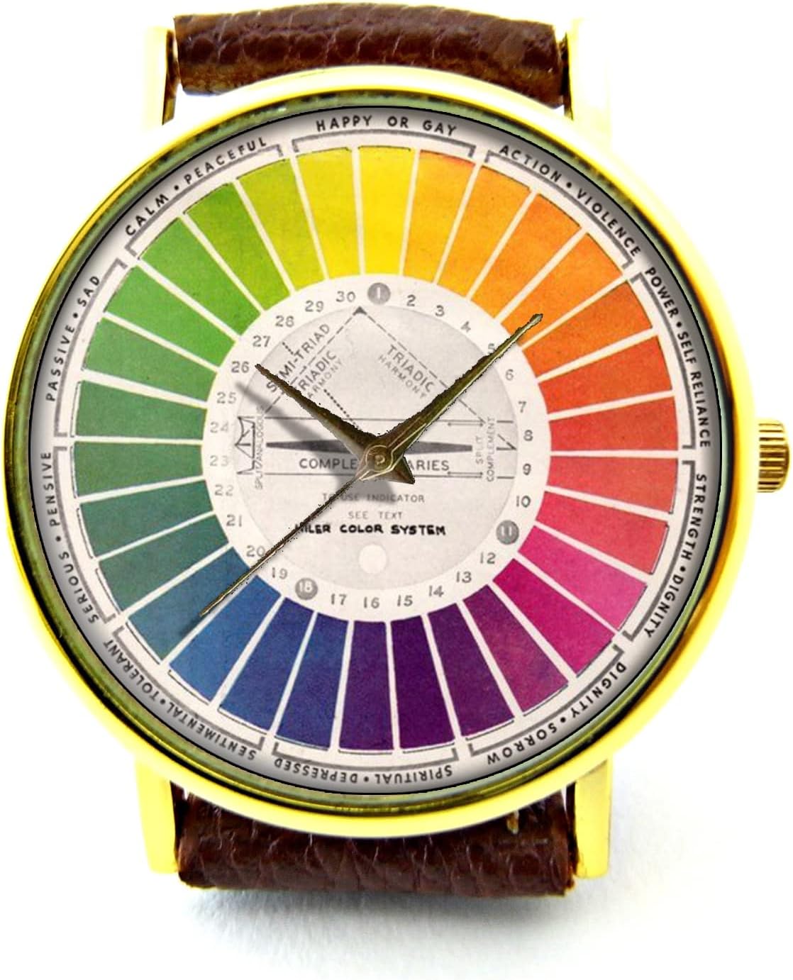 Elevate your style with this unique Color Wheel Leather Watch, a perfect blend of artistic design and everyday functionality. Handcrafted with precision, this timepiece features a vibrant color wheel dial set within a genuine leather cuff, making it a standout accessory for any outfit. Whether you prefer a classic black or a rich brown strap, this watch offers versatility and comfort without compromising on durability. Each watch is handmade, ensuring that your piece is as unique as you are. It comes with a battery included, so it is ready to wear right out of the box. This unisex watch serves as an excellent gift for birthdays, anniversaries, holidays, or any special occasion for the art lover in your life. Embrace the perfect combination of creativity and practicality with this durable, stylish genuine leather bracelet watch.