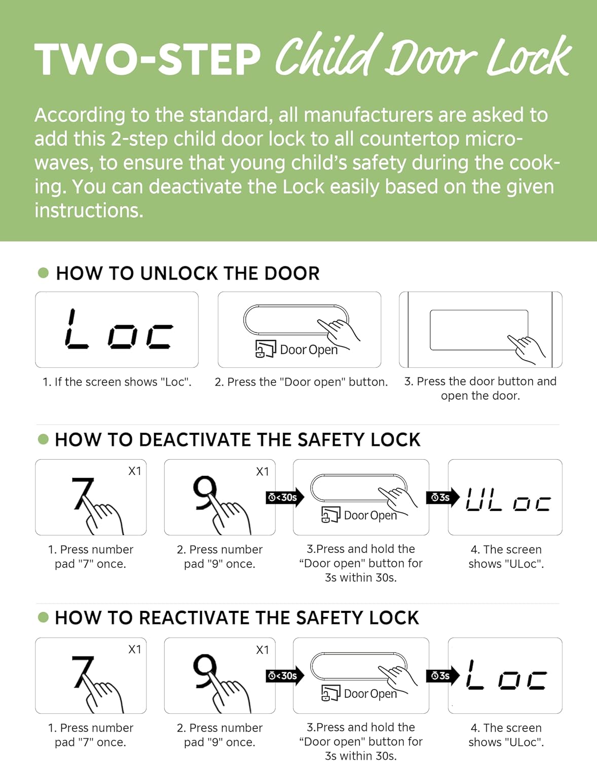 - Energy Saving ECO Mode: Designed with an eco-friendly function to turn off the display and conserve energy when the microwave is not in active use.