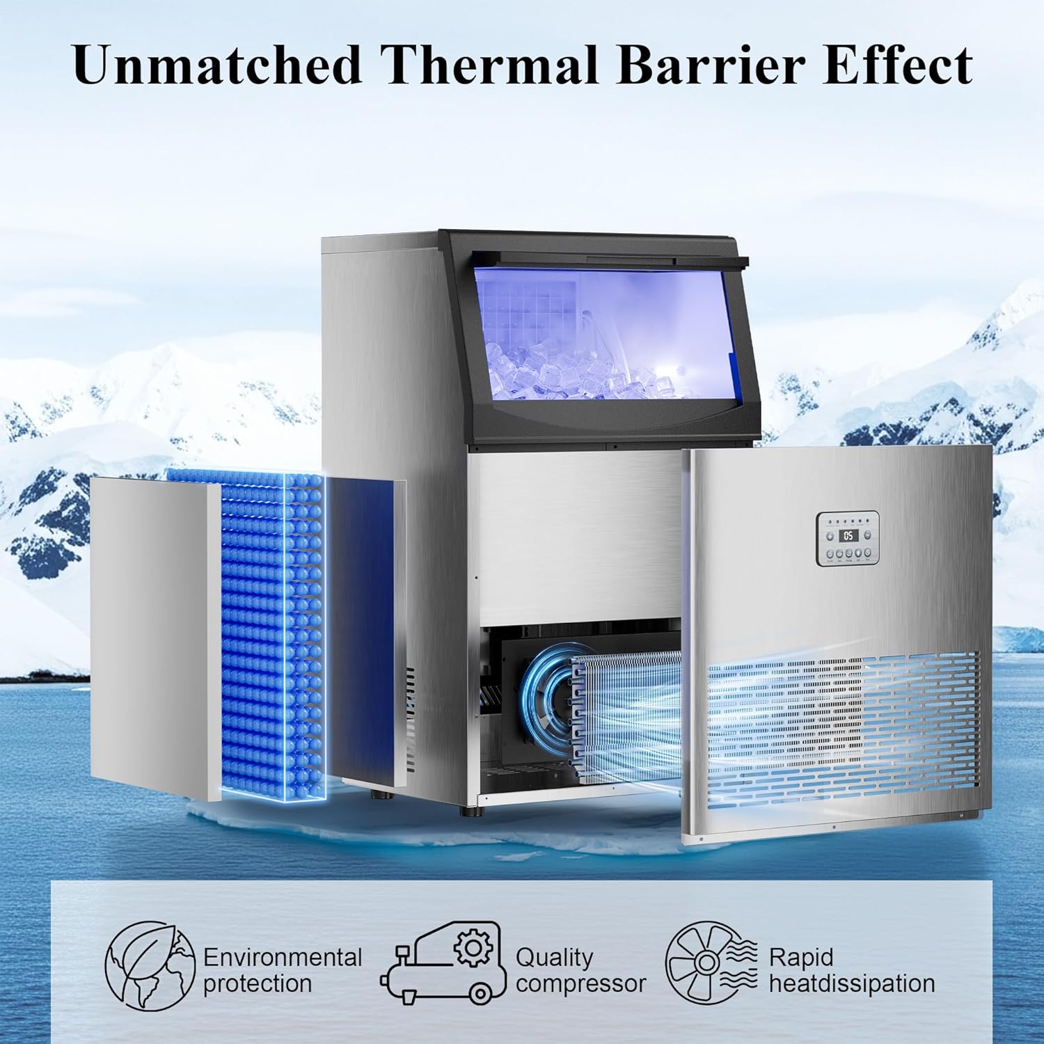 • Intuitive Controls: Features an advanced LCD panel to adjust ice cube thickness and monitor performance with precision.