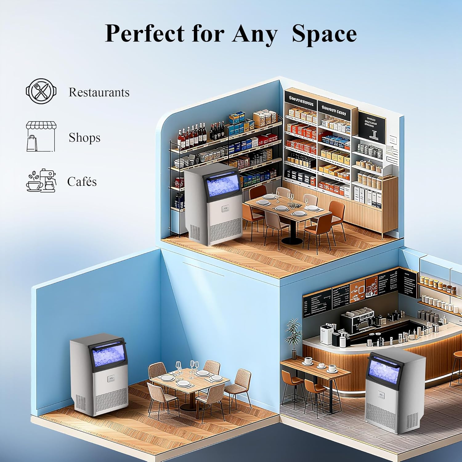 • Quiet & Efficient: Equipped with a high-efficiency compressor and noise-dampening technology, this unit runs quietly, making it suitable for open bars and quiet office environments.