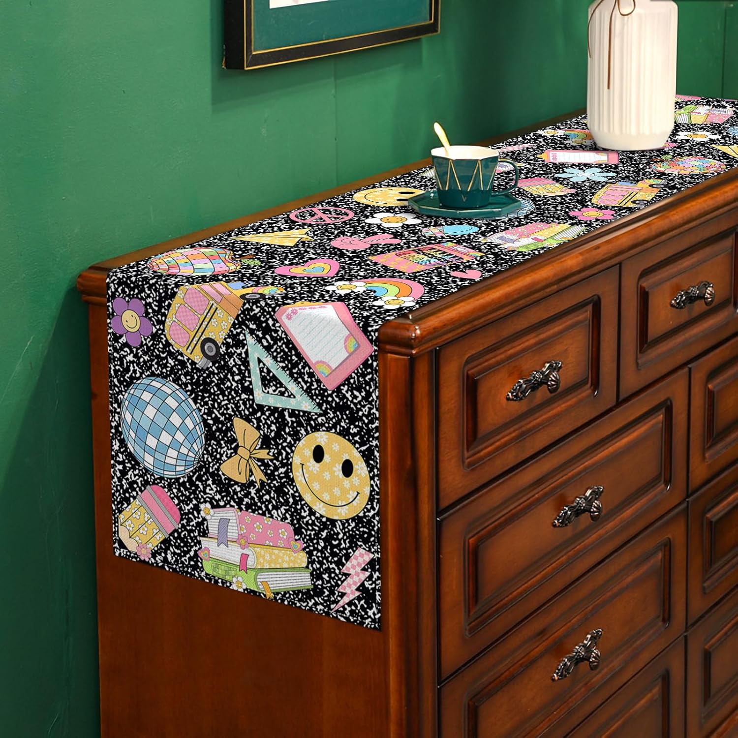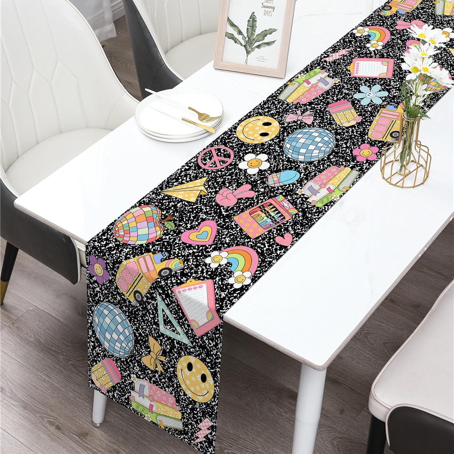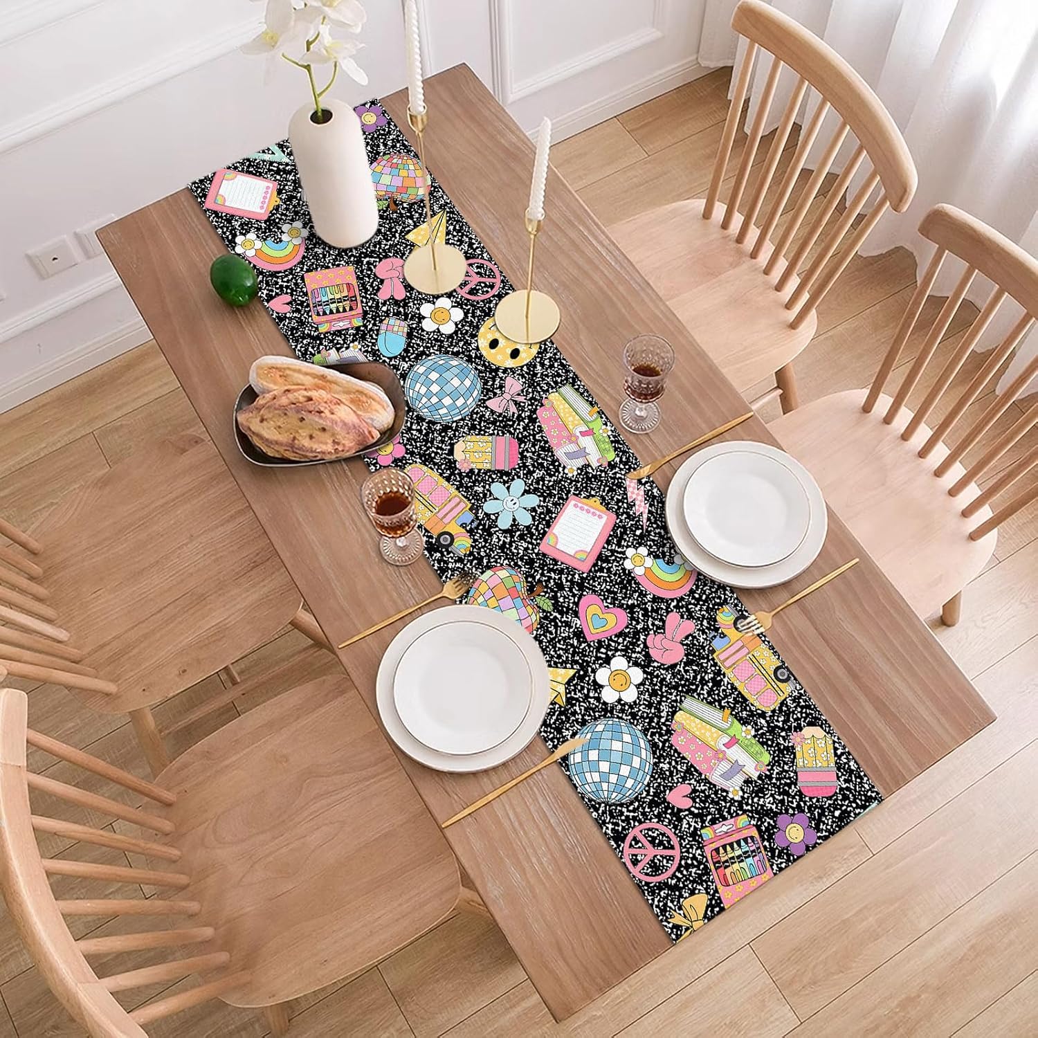 Composition Notebook Table Runner – 13×72 Inch Back to School Party Decor, Teacher Appreciation Week Classroom & Home Dining Table Decoration