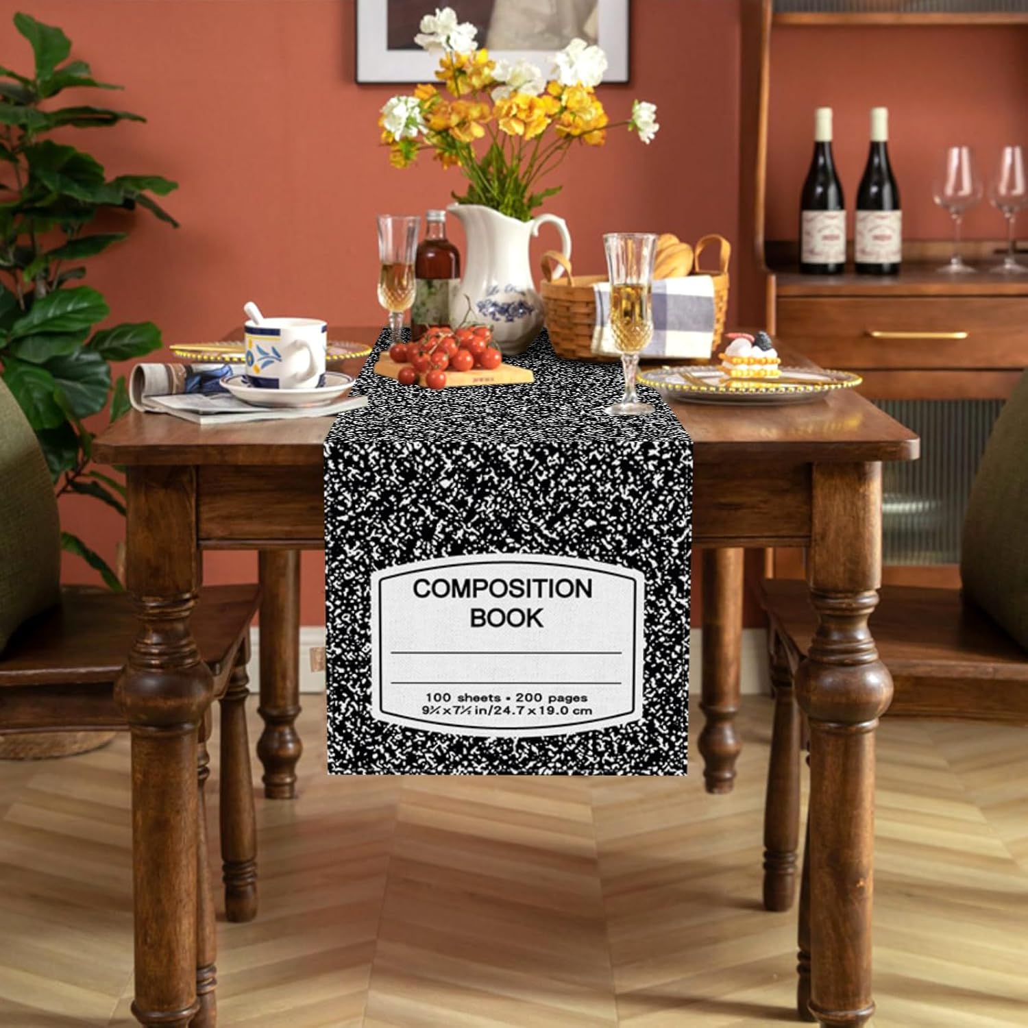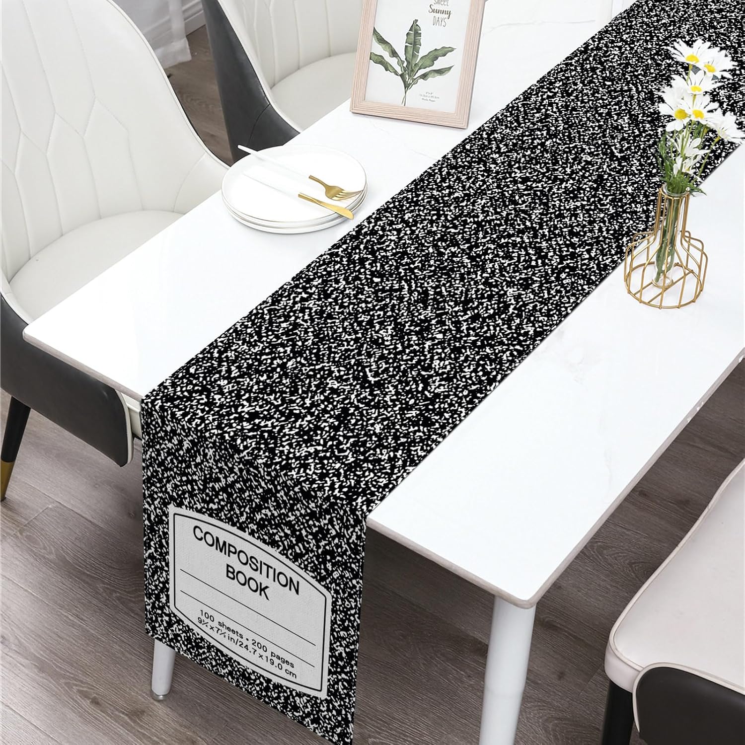 Celebrate the return to the classroom in style with this charming Composition Notebook Table Runner. Designed to look like a classic black-and-white marble notebook, this runner is the perfect way to show appreciation for teachers, decorate classroom parties, or add a nostalgic touch to your dining space during the back-to-school season.