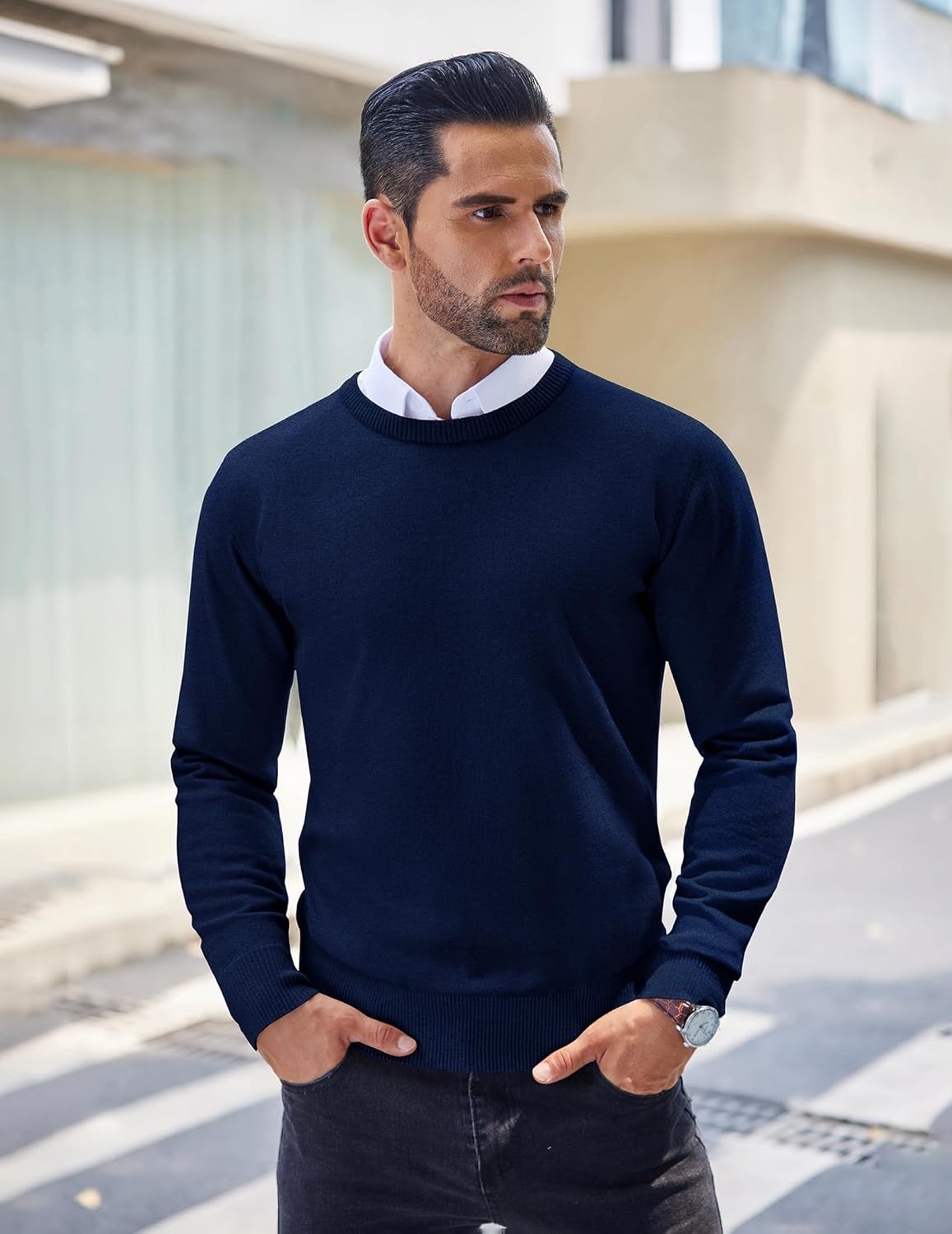 • VERSATILE STYLE: Classic crew neck pullover perfect for layering over shirts or wearing alone with jeans.