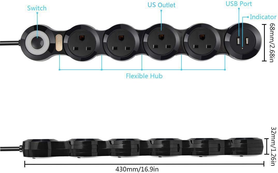 - Customizable Shape: The dynamic 120° rotational design allows each outlet to rotate individually. Whether you need it straight or curled like a snake, it conforms to your setup.