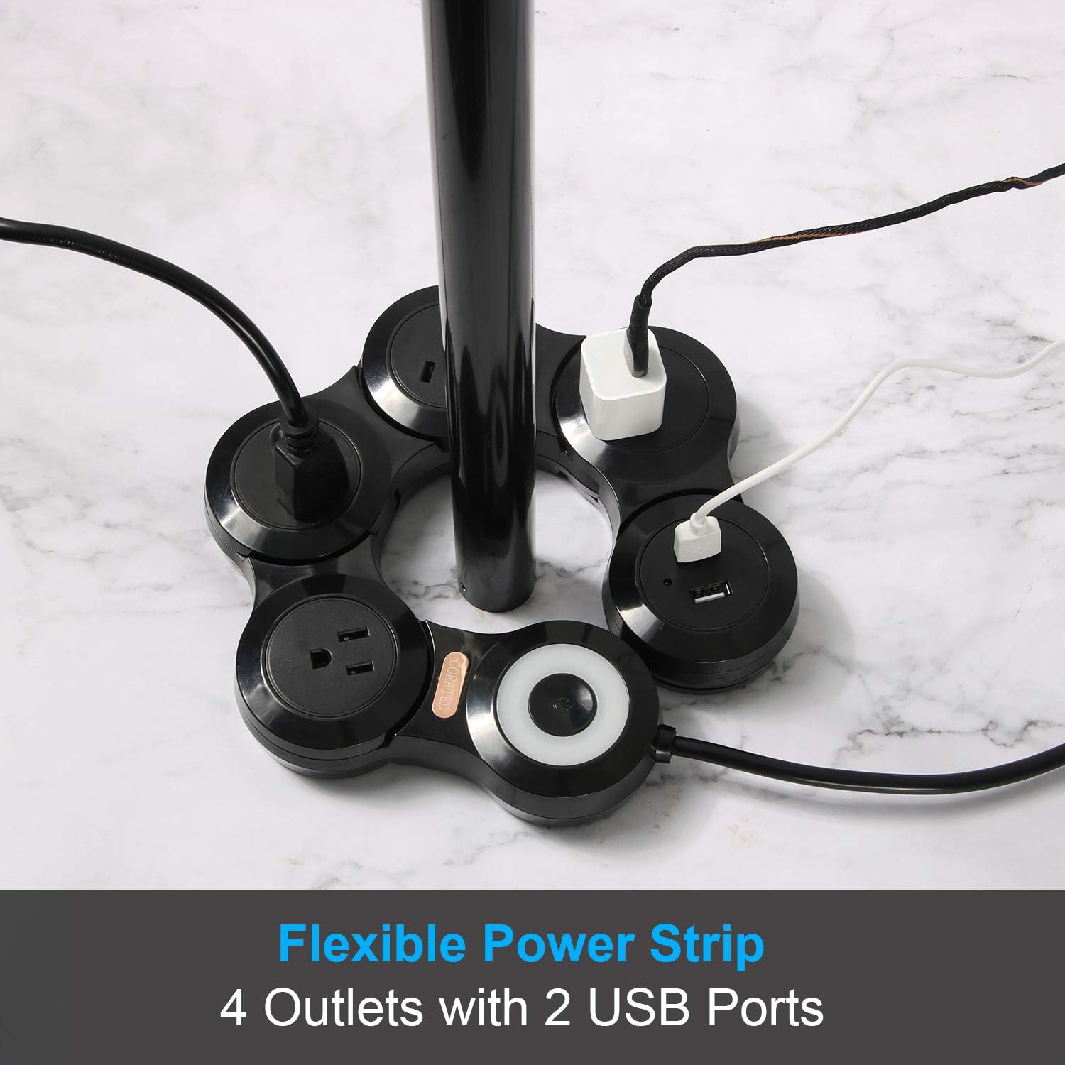 CORATED 9Ft Flexible Surge Protector Power Strip – 4 AC Outlets & 2 USB Ports, 120° Rotatable Extension Cord for Home, Office, & Travel (Black)
