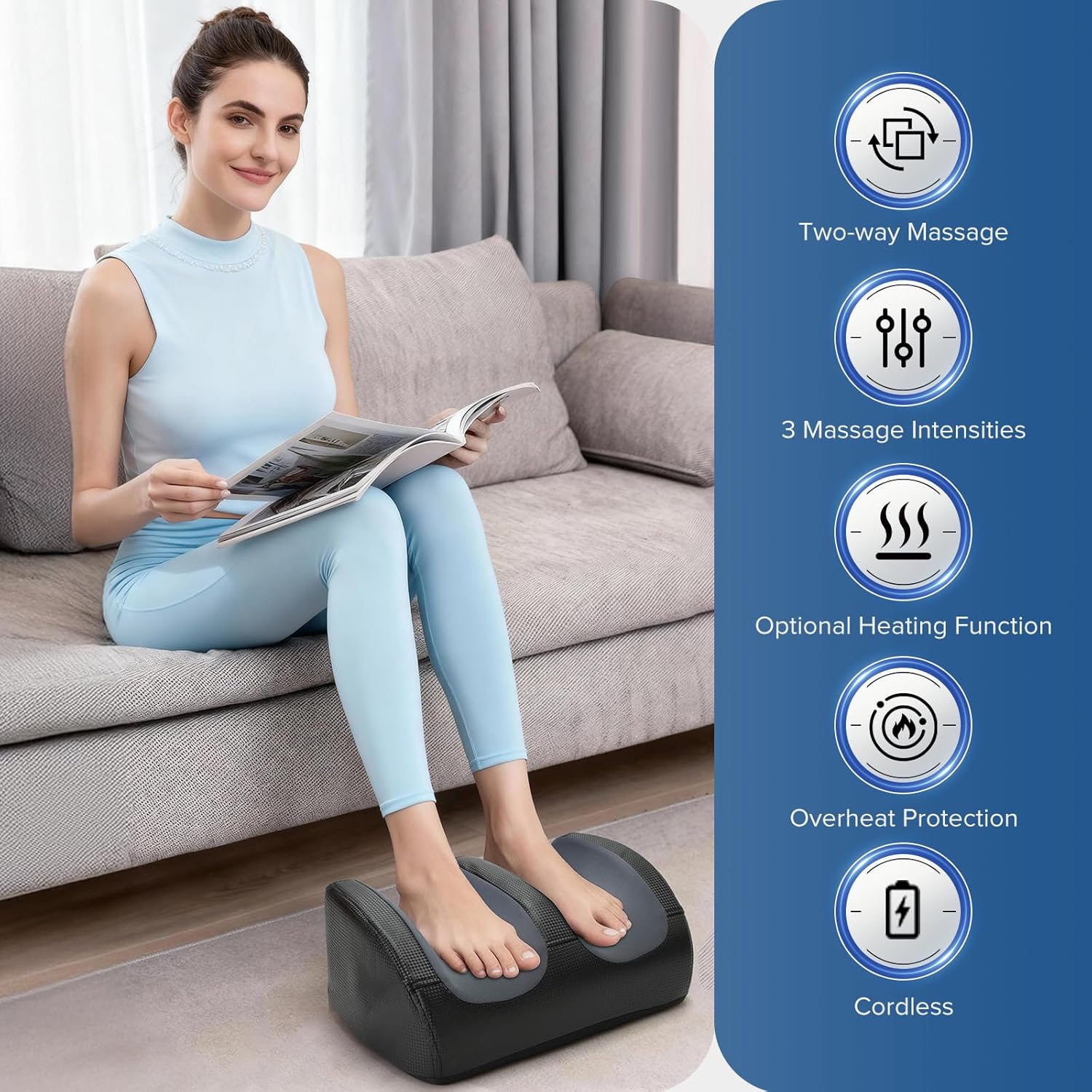 - Deep Kneading Shiatsu: Equipped with 8 massage heads and 2-way rollers to simulate real finger pressure, effectively targeting foot and calf muscle tension.