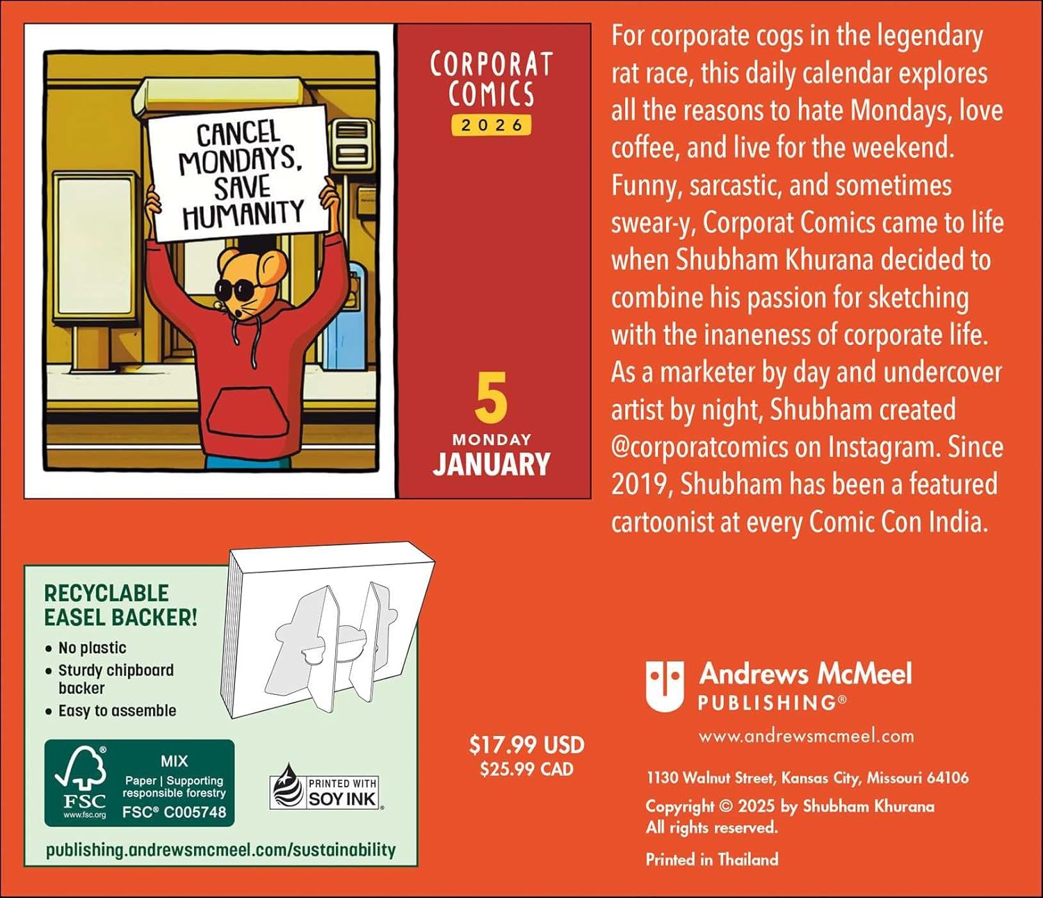 Survive the daily grind with the Corporat Comics 2026 Day-to-Day Calendar, the perfect satirical companion for corporate cogs and keyboard warriors everywhere. Created by Shubham Khurana—the marketer by day and undercover artist by night—this calendar hilariously captures the inaneness of office life, from the dread of Monday mornings to the desperate need for coffee. Whether you are working from home in pajamas or grinding onsite at the office, these hard-hitting, sarcastic comics will resonate with anyone navigating the legendary rat race. Shubham, a featured cartoonist at ComicCon India since 2019 and published author, brings his sharp wit to your desk with this collection of tear-off pages. It’s an ideal gift for employees, bosses, and anyone who understands that work-life imbalance is the real pandemic.