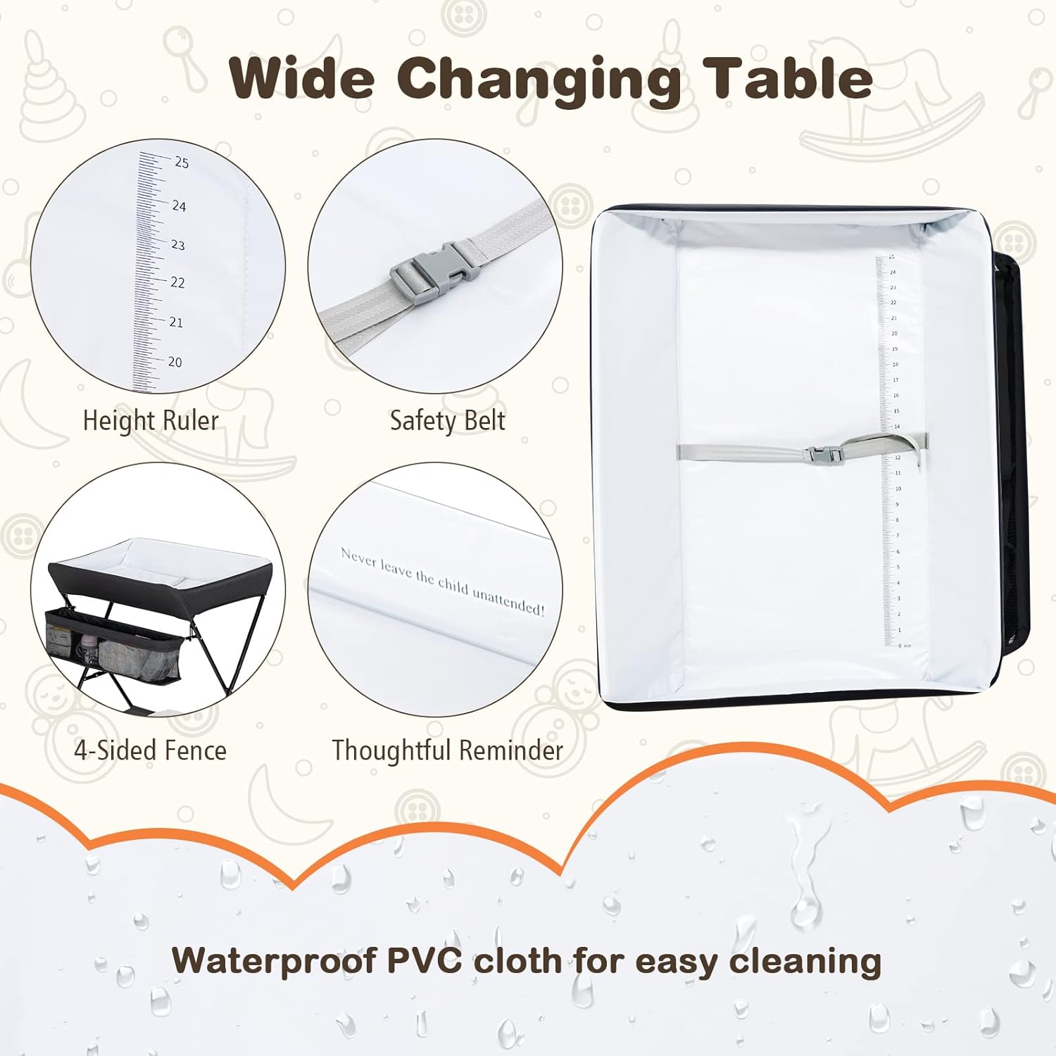 Effortless Portability & Cleaning: Perfect for small spaces or travel, the lightweight frame folds down compactly in seconds using the side safety locks. The waterproof surfaces make cleaning inevitable messes a breeze. Set up your nursery station anywhere and fold it away when done.