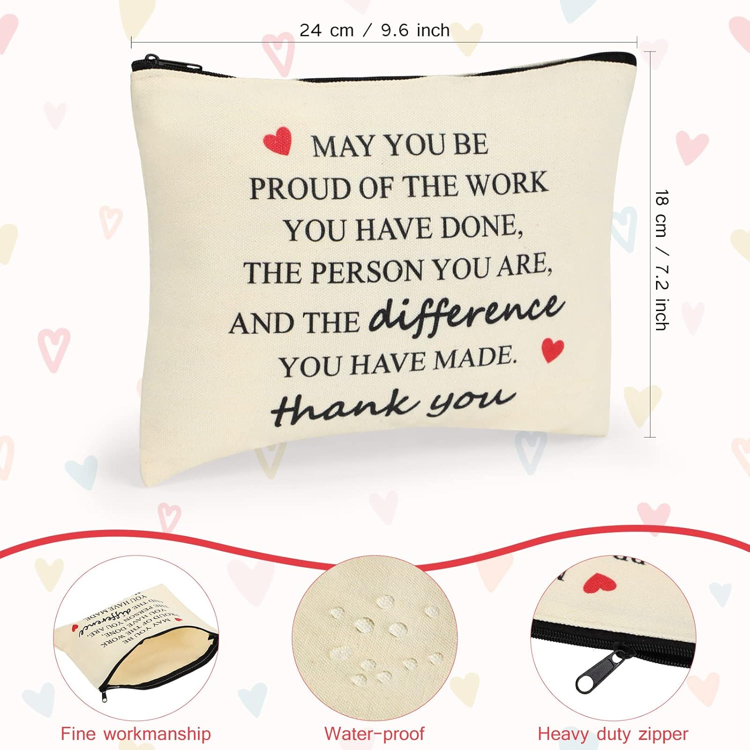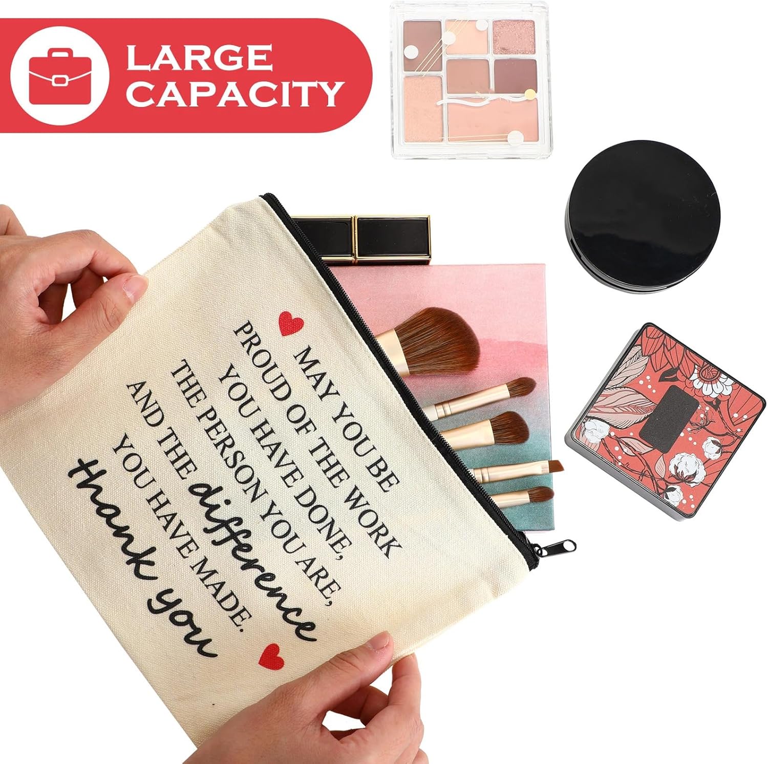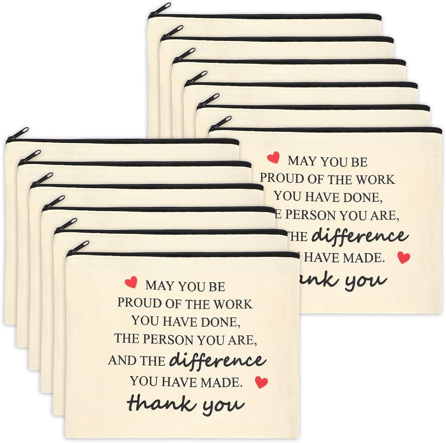 Celebrate the unsung heroes in your life with this premium set of 12 Inspirational Canvas Makeup Bags. Designed specifically for bulk gifting, these cosmetic pouches are the perfect way to say “Thank You” to teachers, nurses, social workers, volunteers, and dedicated staff members. Each bag is tastefully printed with the empowering message: “May you be proud of the work you have done, the person you are, and the difference you have made.”
