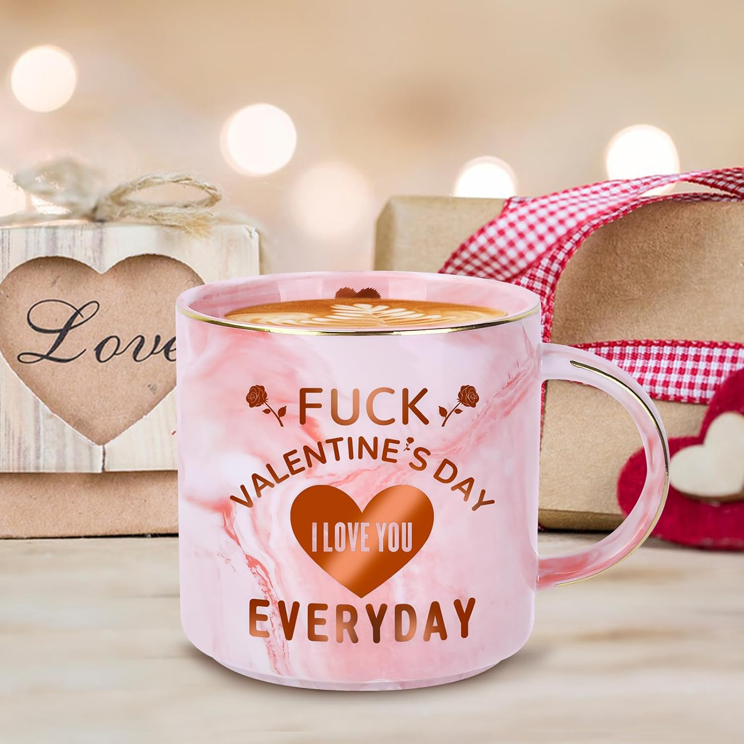 LUXURIOUS PINK MARBLE & GOLD DESIGN: Elevate her morning routine with this elegantly crafted mug. Featuring a unique, reactive pink marble glaze, no two mugs are exactly alike. The stunning interior reveals a shimmering golden heart at the bottom—a delightful surprise waiting to be revealed as she finishes her favorite drink. The front of the mug proudly displays the loving message: “I Love You Every Day.”