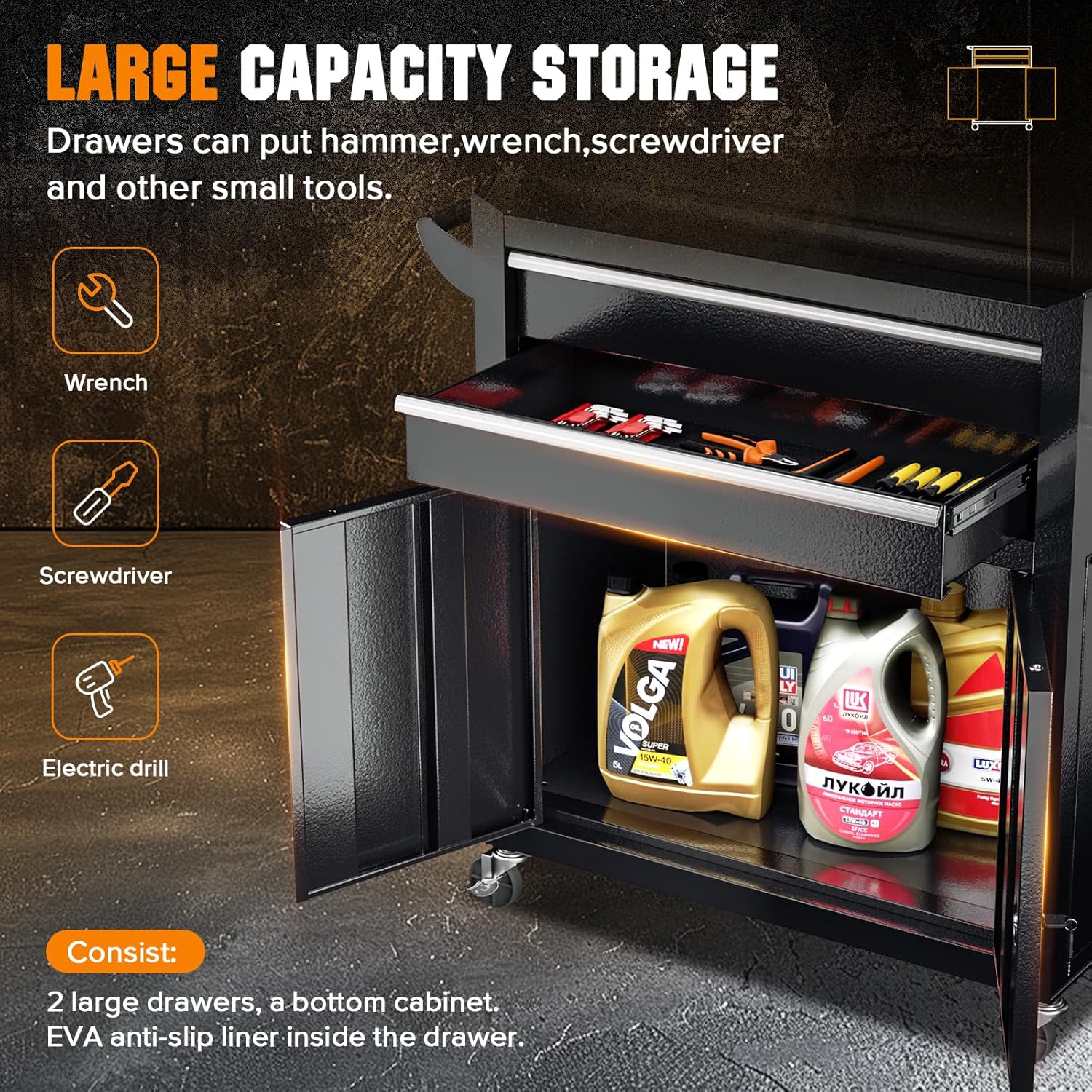 - DETACHABLE 2-IN-1 DESIGN: Features a top toolbox and a bottom rolling cabinet that can be used together for maximum storage or separated for portable tasks.
